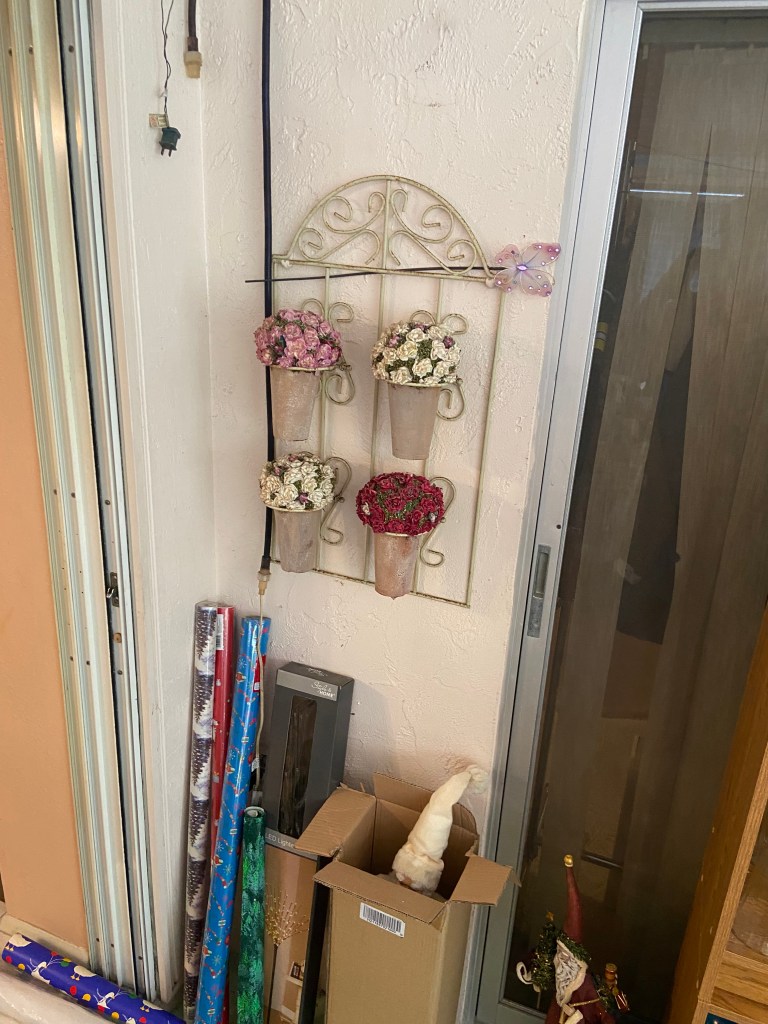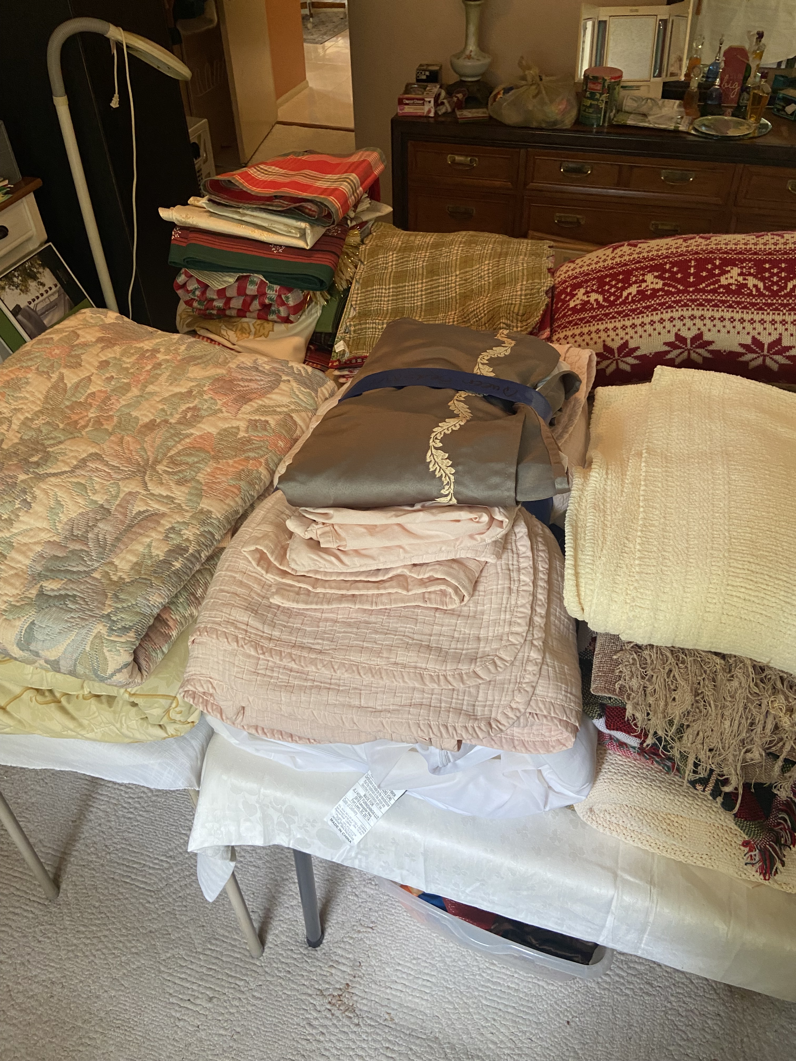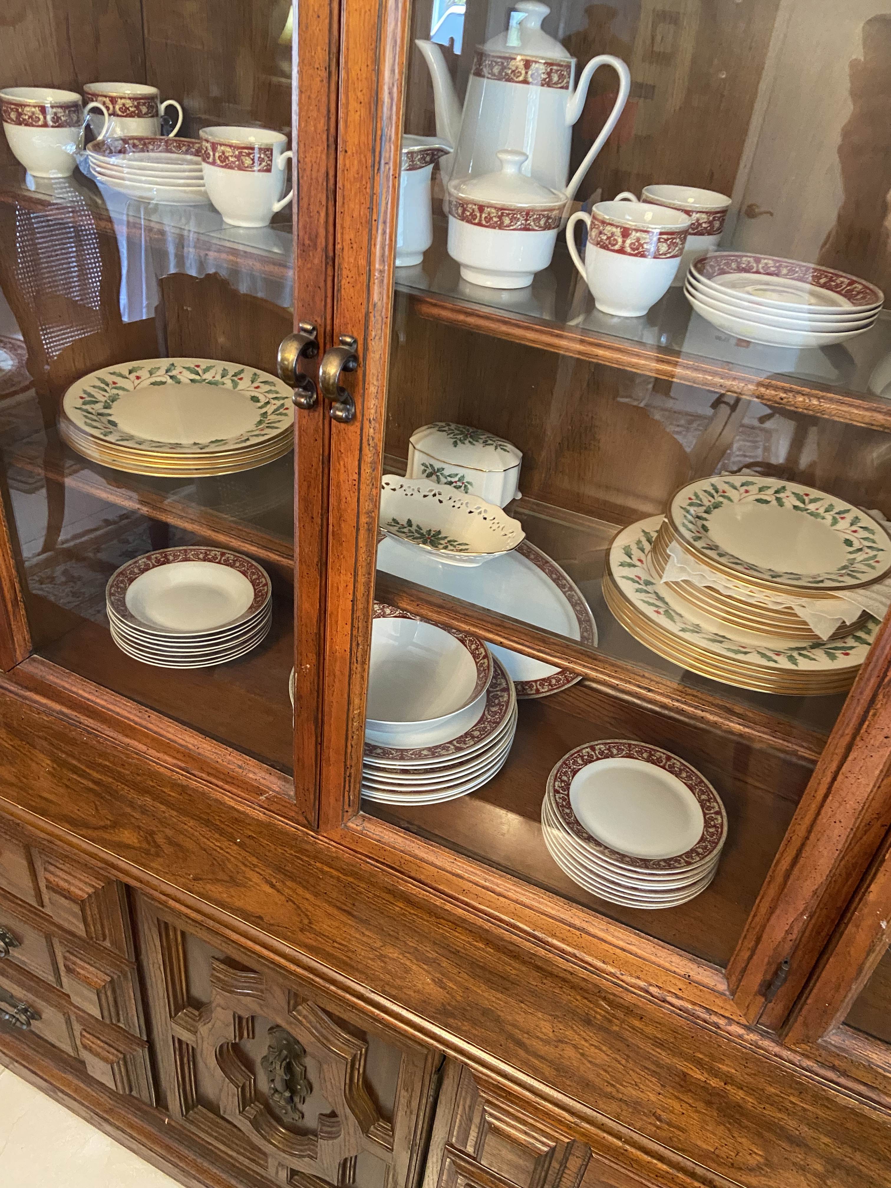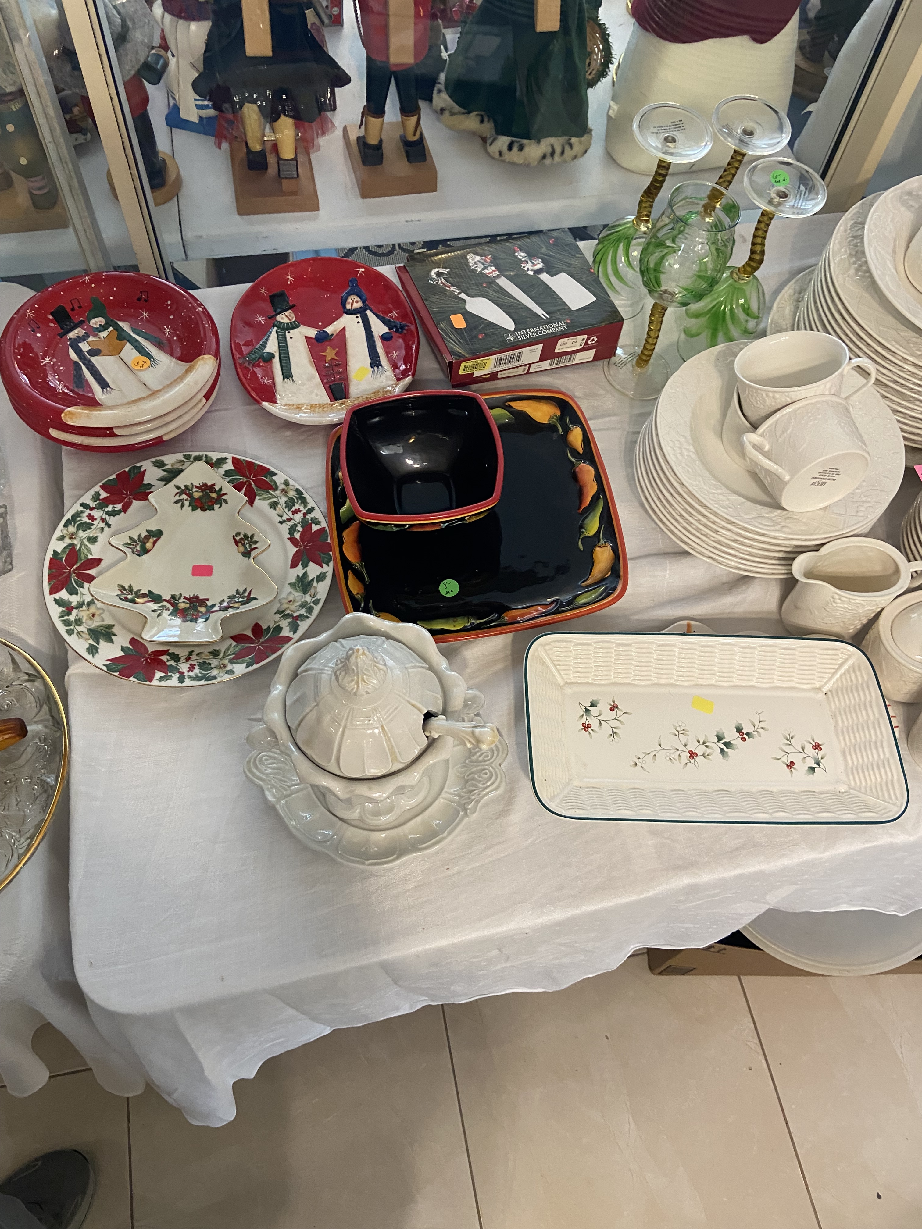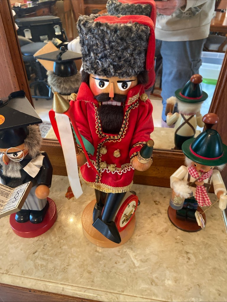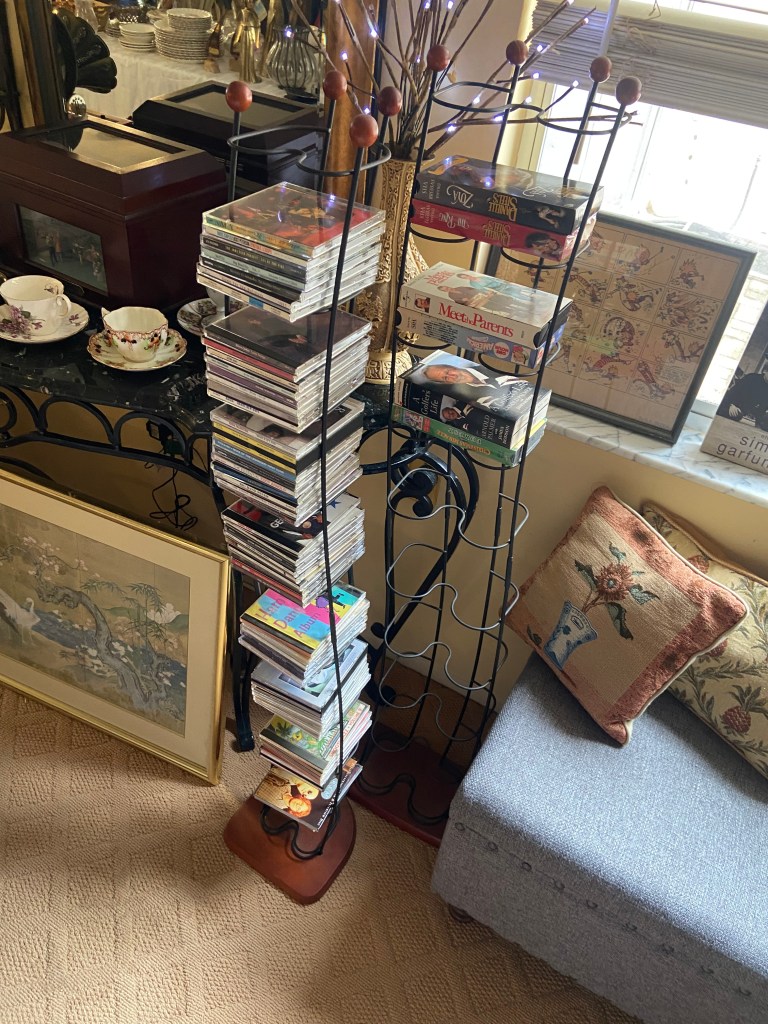 We have Burlington house hutch, marble top buffet, Vintage Collectibles, dining room table with four chairs, Hall tree, Steinbach Nutcracker from Germany, vintage hallway tables, art deco couch, decorator pieces, crystal, large fountain, mid-century armchairs, recliners, three stacking music box tables from Italy, Venus de Milo sculpture, pedestal, mid-century accent tables, curio, model ships, drop leaf dining room, table, and four chairs, marble top sofa table, artwork, CDs, VHS‘s, DVDs, albums, 78s, 45s and cassettes, 50 inch RCA Roku TV, stereo with turntable and cassette player, vintage oriental wooden birdcage, lamps, vases, green sofa, vintage pictures, sculptures, vacuums, room divider, bar area, kitchen, pampered chef, power juicer, Mikasa English Countryside dishes and serving set, vintage Hazel Aras hand painted glass set, glassware, toaster oven, knives and utensils, pots and pans, cookware, serving dishes, roosters, salt and pepper shakers, cups and dishes, canister sets, FA Pawla art Santa Barbara, we have a Christmas wonderland, Fontanini nativity set, department 56, village pieces, ornaments, Santa Claus figures, yard art, Christmas lights, dual patio glider, outdoor chairs, stressless recliner, patio set, storage bins, outdoor wall, art, outdoor cabinets and shelves, Thomasville bedroom set with dresser, high boy, nightstands and headboard, Butler writing desk, linens, high boy dresser, lingerie chest, jewelry boxes, vintage box phone, dolls, stuffed animals, throw pillows, OT fit briefs, shoes, hats, vintage hats, purses, bathroom items, early American dressers, high boy and nightstands, lamps, train sets, Viking Husqvarna sewing machine, bookcases, books, vintage and old books, old sheet music, vintage magazines, cameras, 35 mm cameras, digital cameras, vintage, Disney World, vintage camera accessories, shoe racks, we have hairdressers room, a large number of hairdresser supplies, hair dryer, hairdresser chair, cleaning supplies, art items, garage, three large Coleman storage chess, large Christmas tree, tennis rackets, tools, and much much more.