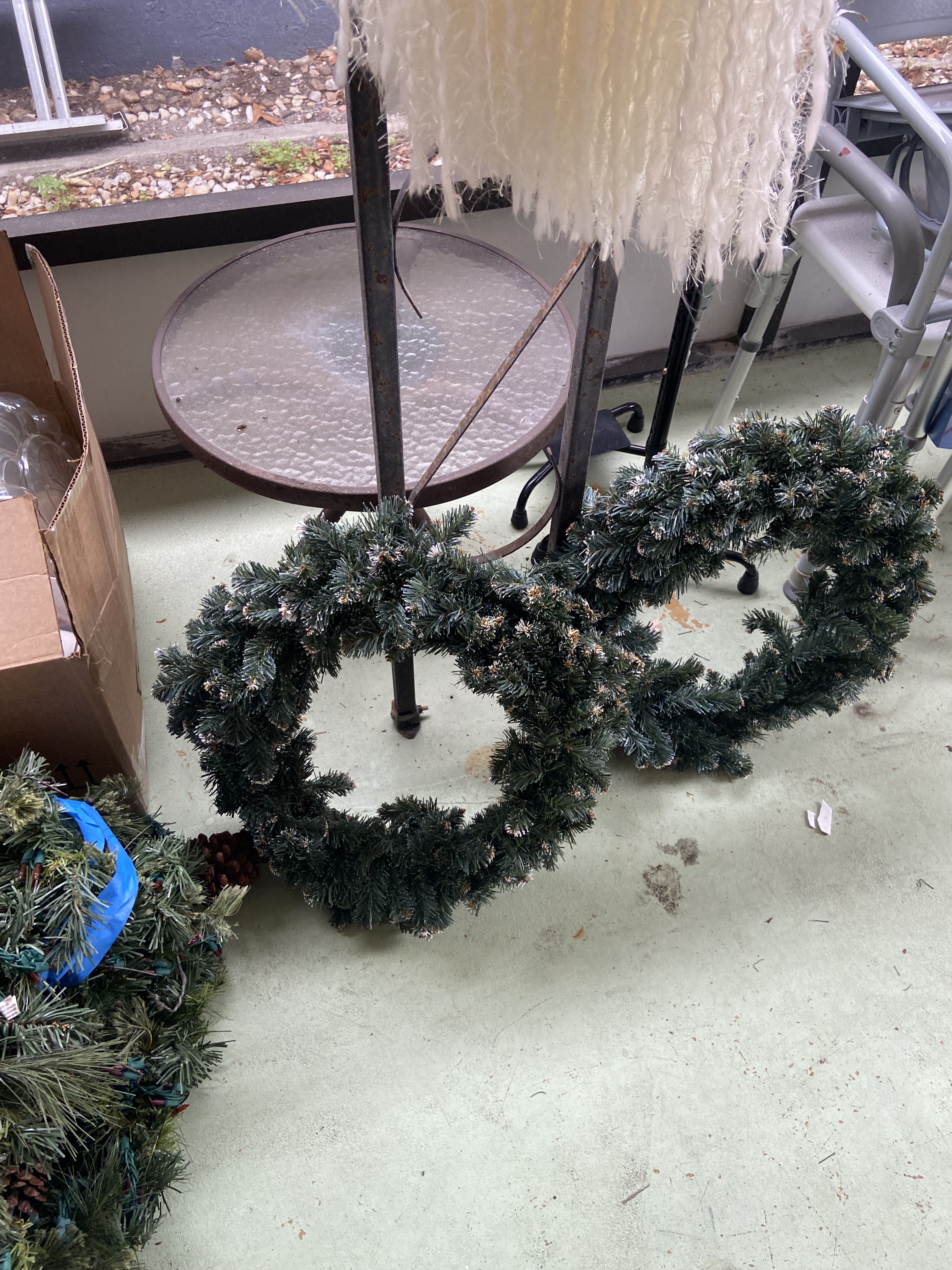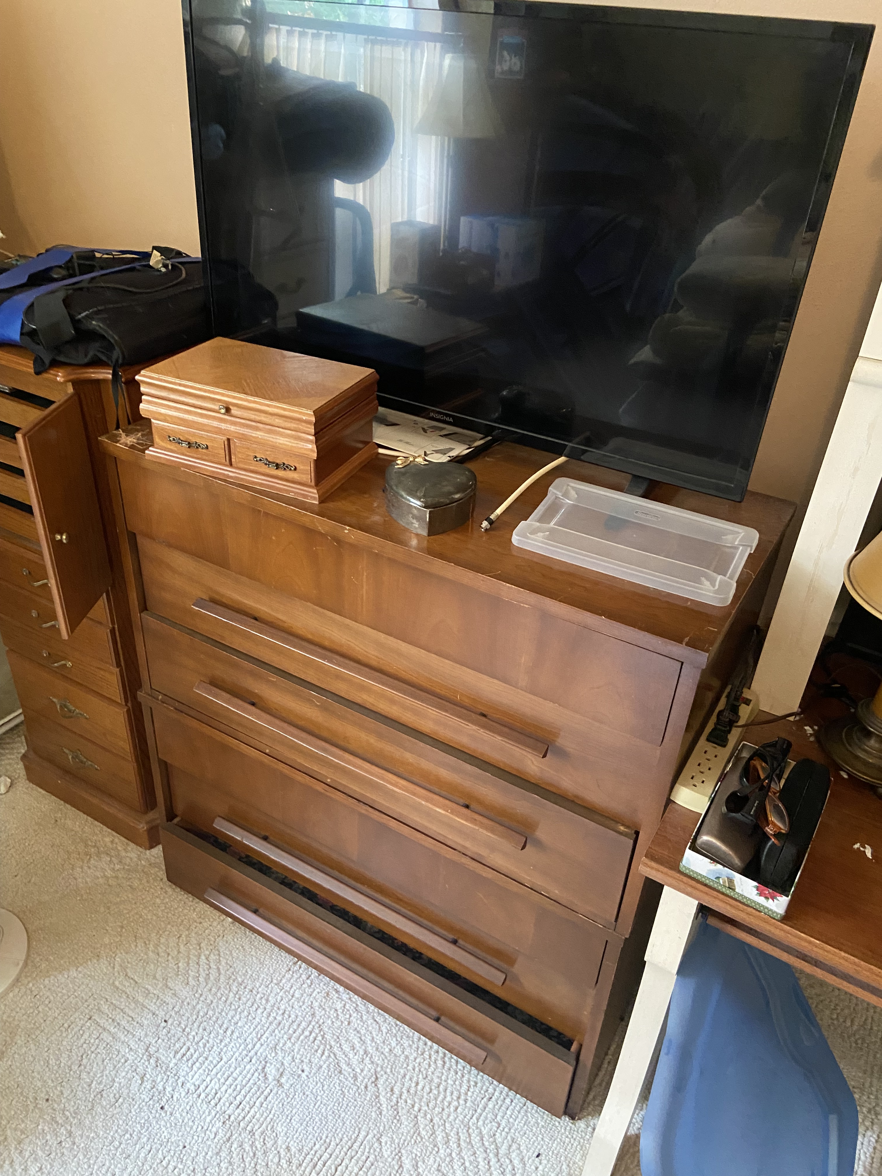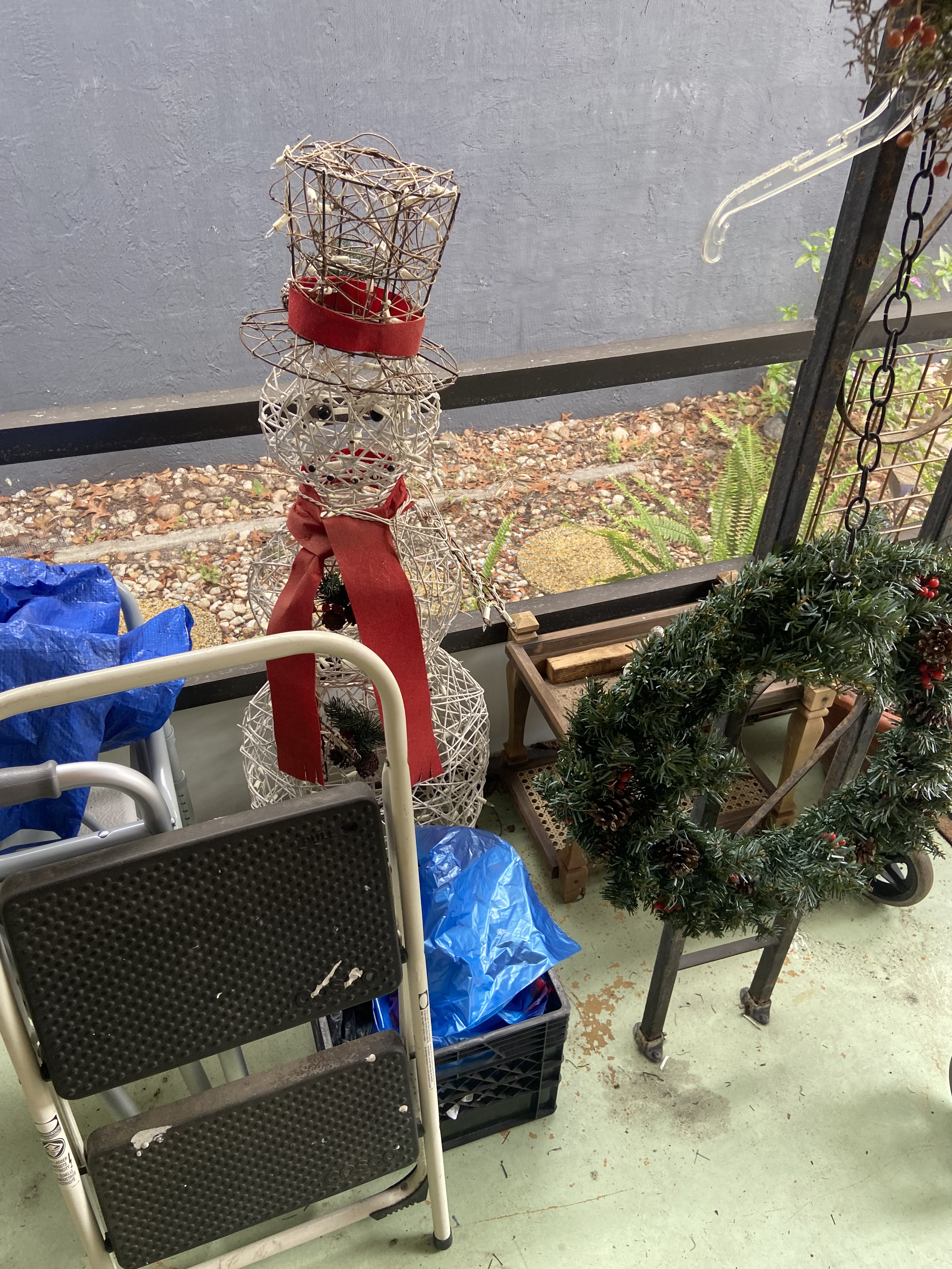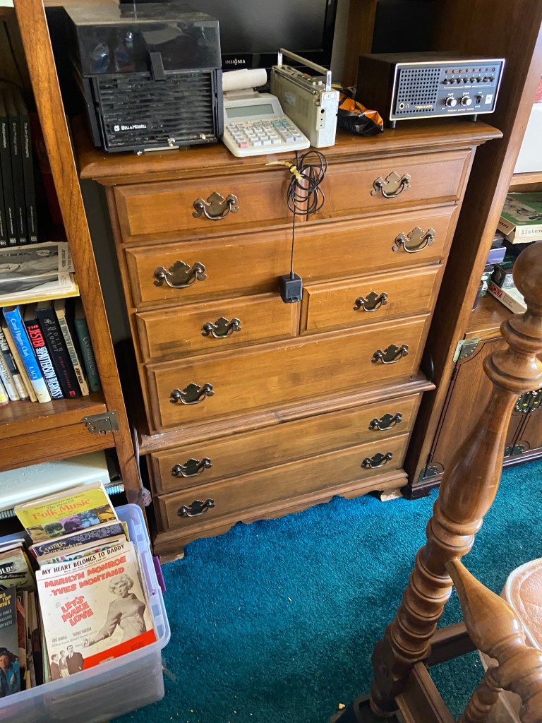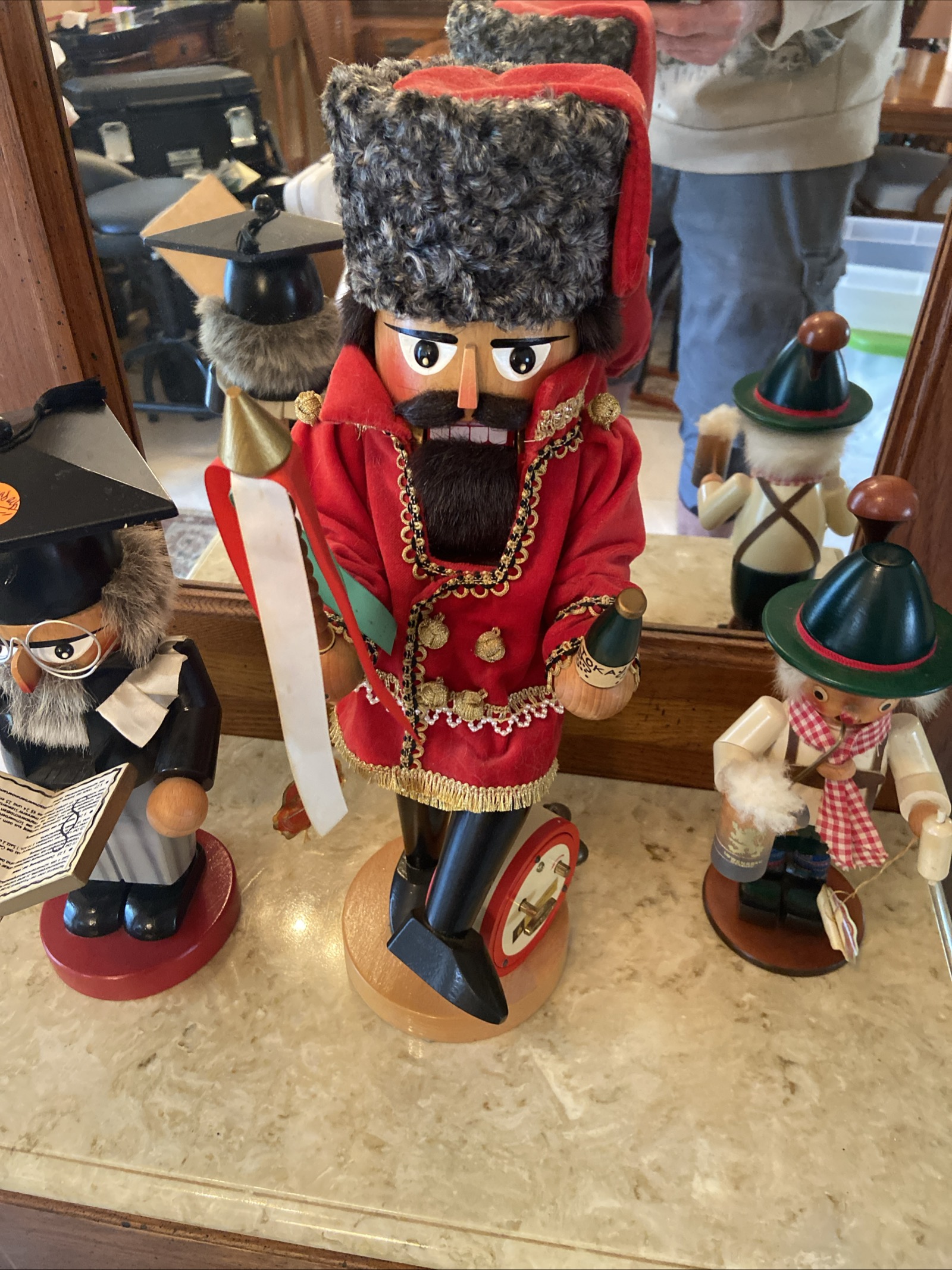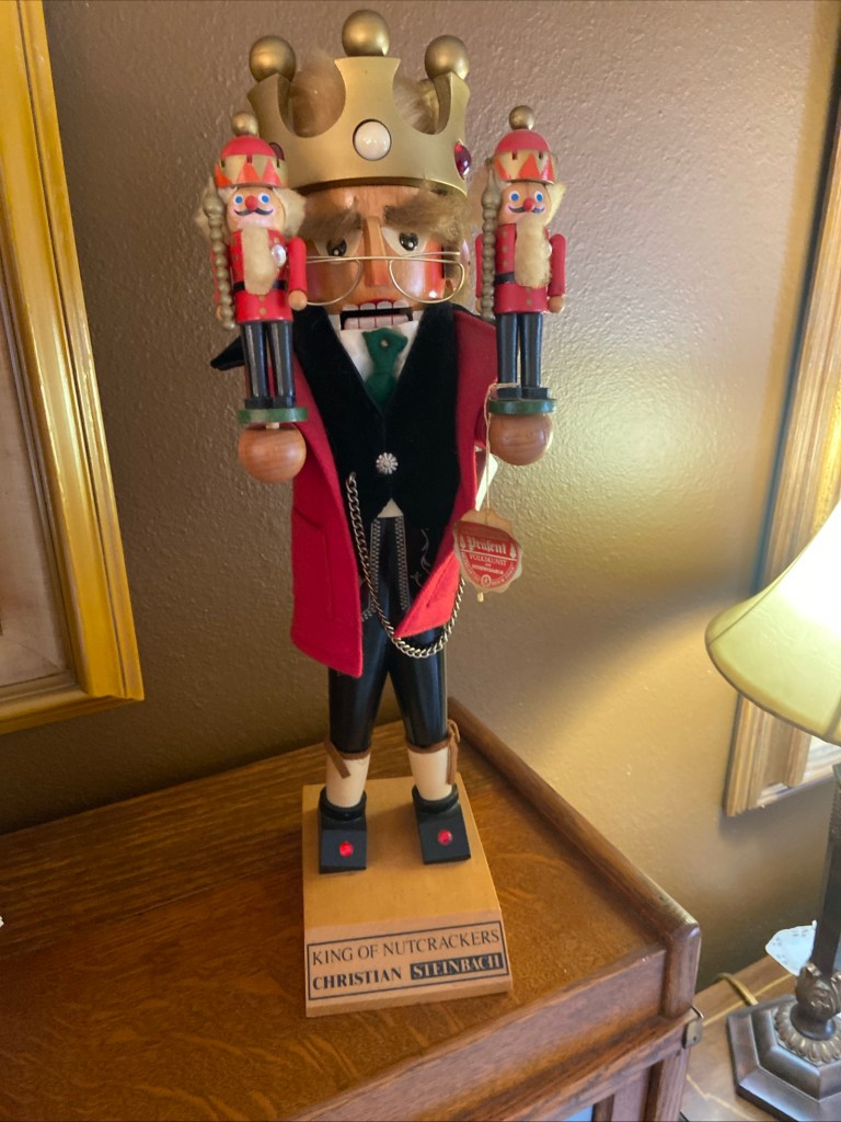 We have Burlington house hutch, marble top buffet, Vintage Collectibles, dining room table with four chairs, Hall tree, Steinbach Nutcracker from Germany, vintage hallway tables, art deco couch, decorator pieces, crystal, large fountain, mid-century armchairs, recliners, three stacking music box tables from Italy, Venus de Milo sculpture, pedestal, mid-century accent tables, curio, model ships, drop leaf dining room, table, and four chairs, marble top sofa table, artwork, CDs, VHS‘s, DVDs, albums, 78s, 45s and cassettes, 50 inch RCA Roku TV, stereo with turntable and cassette player, vintage oriental wooden birdcage, lamps, vases, green sofa, vintage pictures, sculptures, vacuums, room divider, bar area, kitchen, pampered chef, power juicer, Mikasa English Countryside dishes and serving set, vintage Hazel Aras hand painted glass set, glassware, toaster oven, knives and utensils, pots and pans, cookware, serving dishes, roosters, salt and pepper shakers, cups and dishes, canister sets, FA Pawla art Santa Barbara, we have a Christmas wonderland, Fontanini nativity set, department 56, village pieces, ornaments, Santa Claus figures, yard art, Christmas lights, dual patio glider, outdoor chairs, stressless recliner, patio set, storage bins, outdoor wall, art, outdoor cabinets and shelves, Thomasville bedroom set with dresser, high boy, nightstands and headboard, Butler writing desk, linens, high boy dresser, lingerie chest, jewelry boxes, vintage box phone, dolls, stuffed animals, throw pillows, OT fit briefs, shoes, hats, vintage hats, purses, bathroom items, early American dressers, high boy and nightstands, lamps, train sets, Viking Husqvarna sewing machine, bookcases, books, vintage and old books, old sheet music, vintage magazines, cameras, 35 mm cameras, digital cameras, vintage, Disney World, vintage camera accessories, shoe racks, we have hairdressers room, a large number of hairdresser supplies, hair dryer, hairdresser chair, cleaning supplies, art items, garage, three large Coleman storage chess, large Christmas tree, tennis rackets, tools, and much much more.
