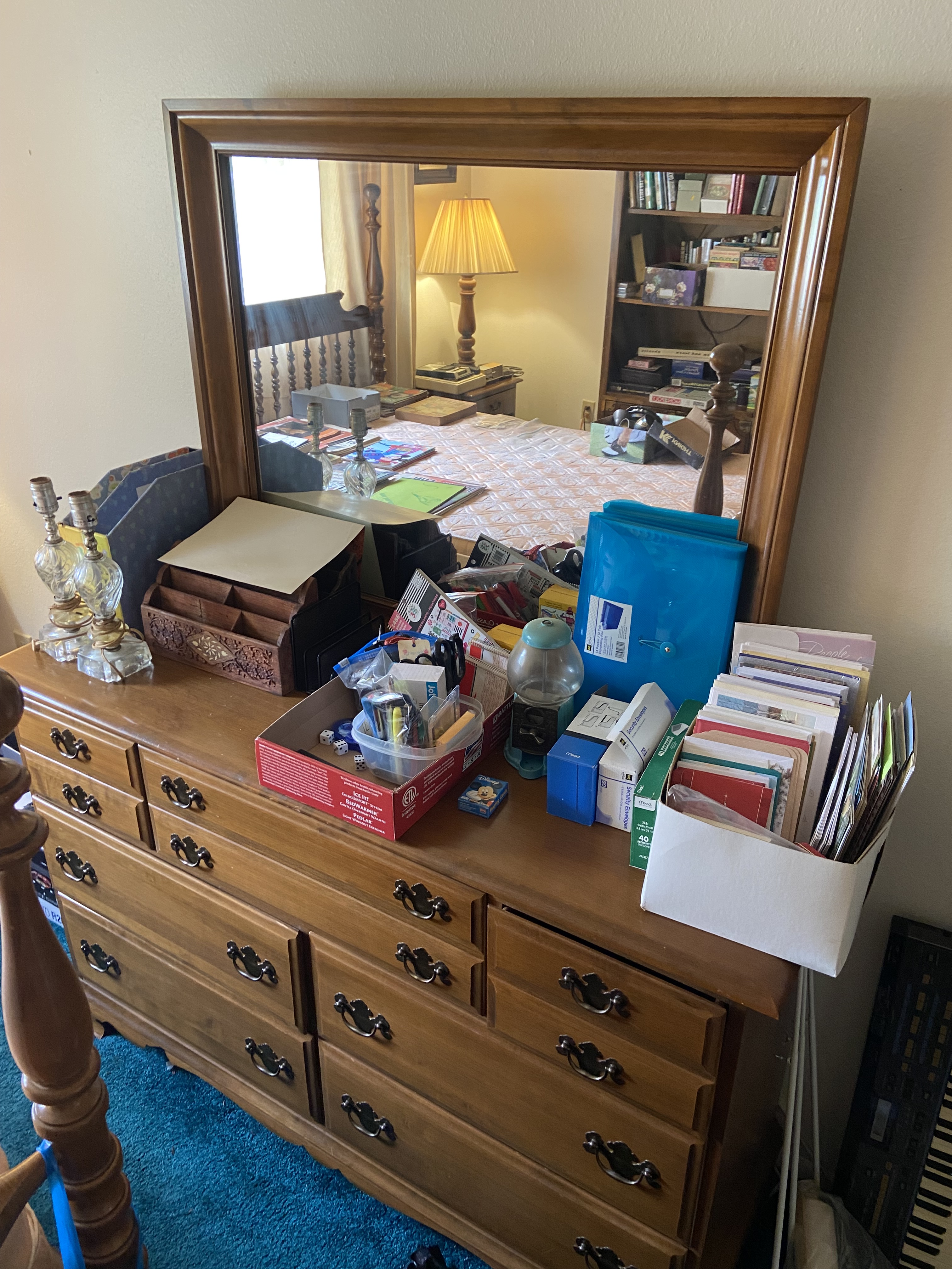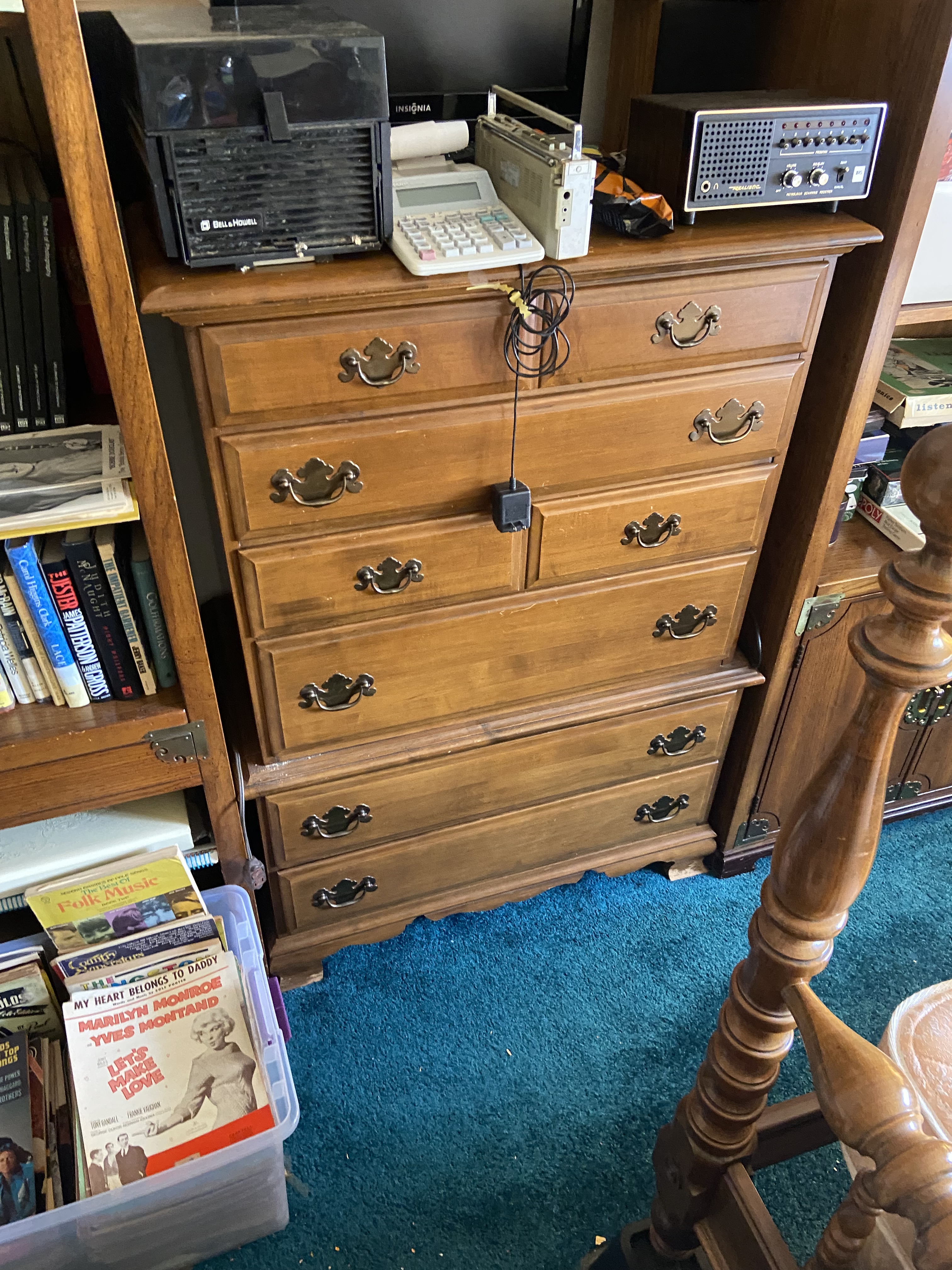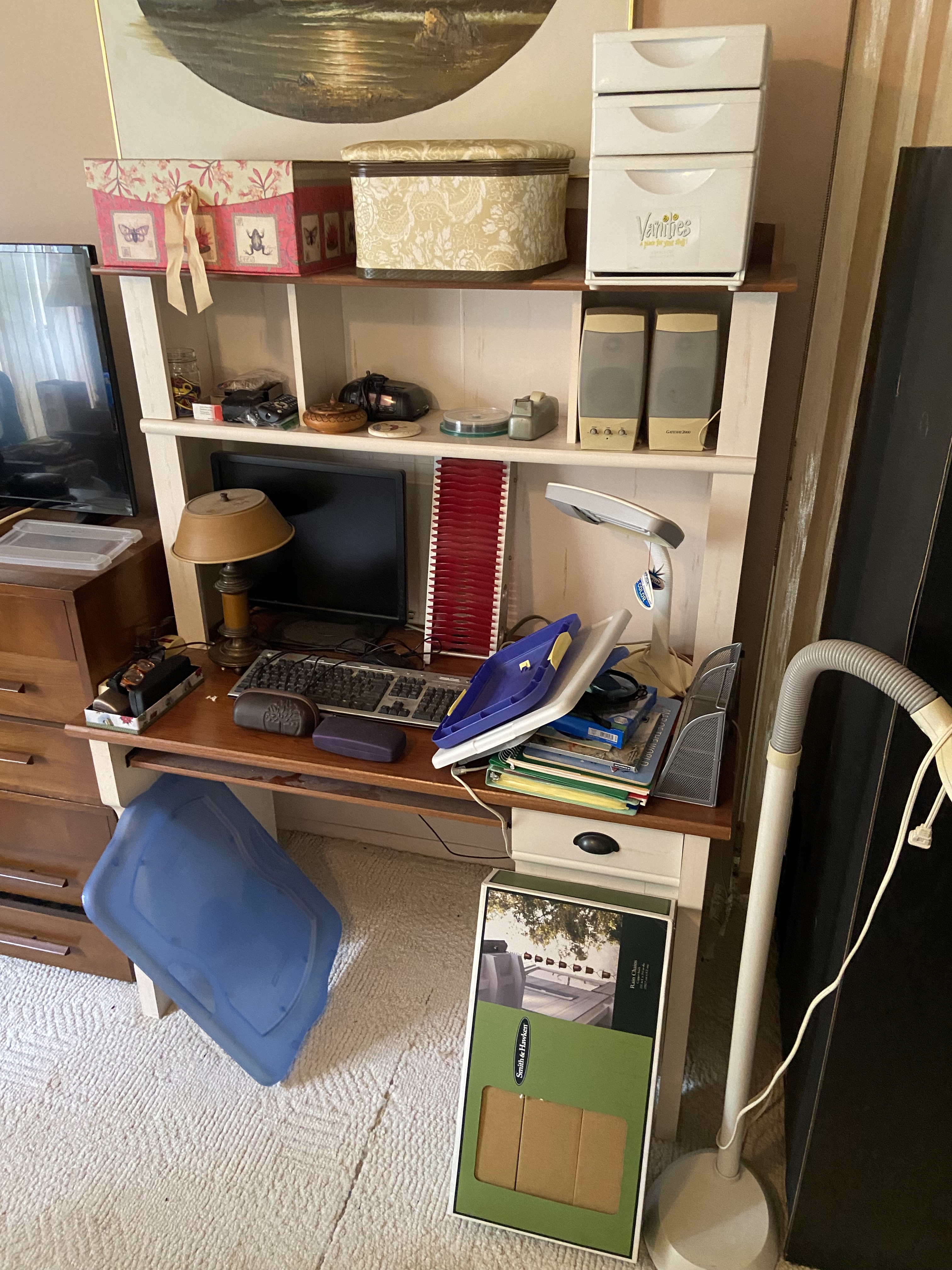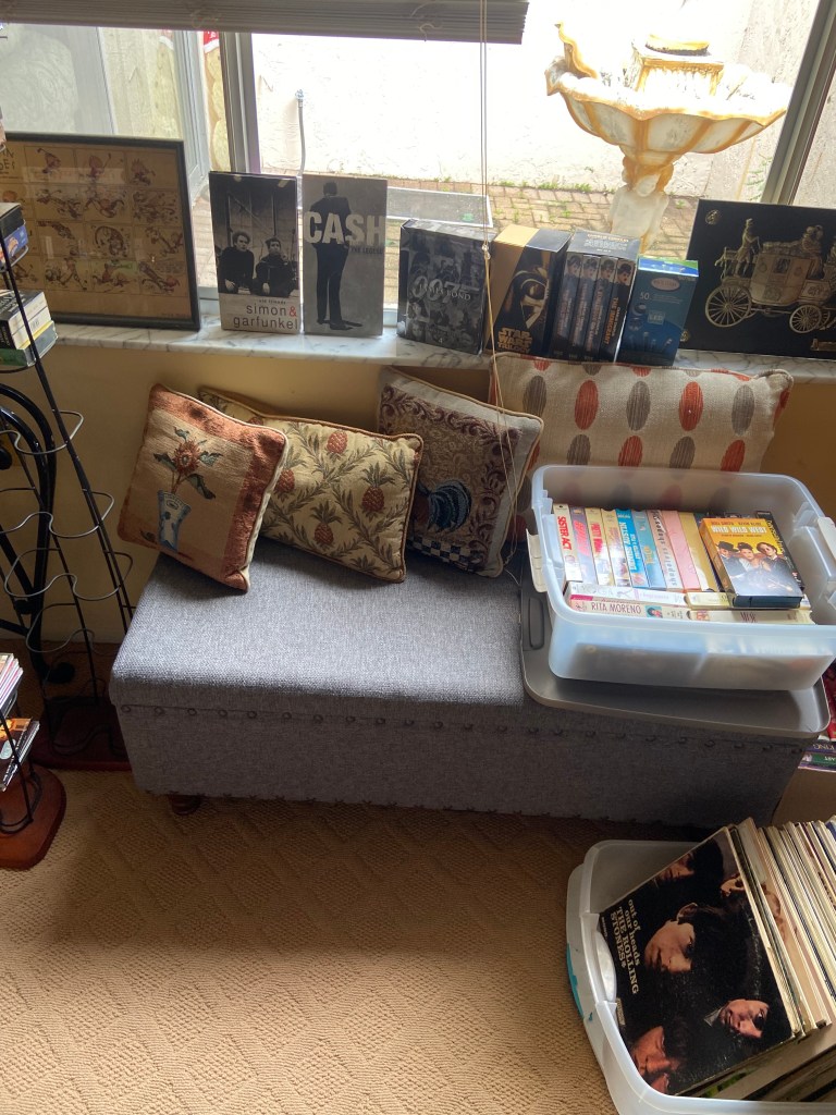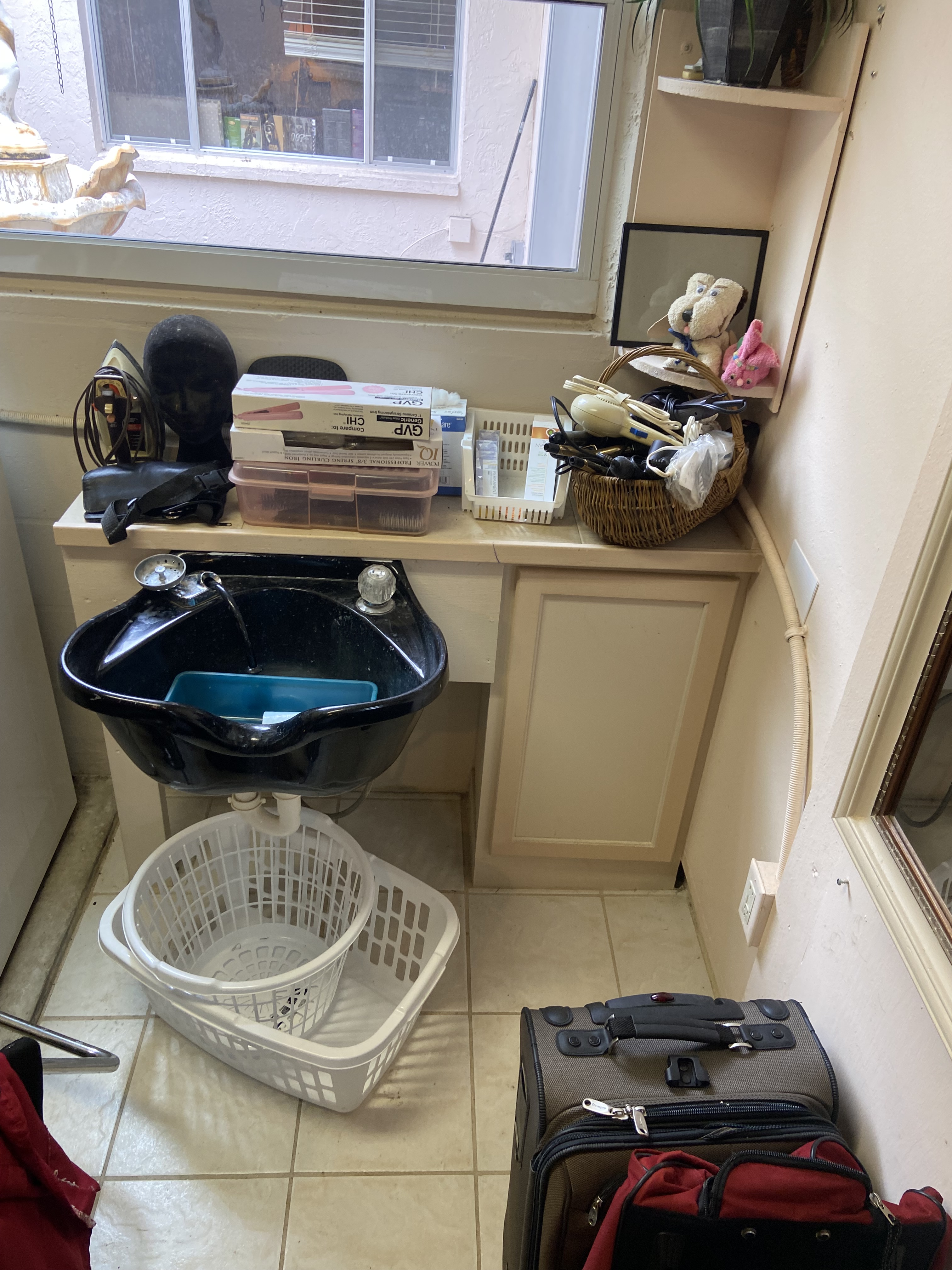 We have Burlington house hutch, marble top buffet, Vintage Collectibles, dining room table with four chairs, Hall tree, Steinbach Nutcracker from Germany, vintage hallway tables, art deco couch, decorator pieces, crystal, large fountain, mid-century armchairs, recliners, three stacking music box tables from Italy, Venus de Milo sculpture, pedestal, mid-century accent tables, curio, model ships, drop leaf dining room, table, and four chairs, marble top sofa table, artwork, CDs, VHS‘s, DVDs, albums, 78s, 45s and cassettes, 50 inch RCA Roku TV, stereo with turntable and cassette player, vintage oriental wooden birdcage, lamps, vases, green sofa, vintage pictures, sculptures, vacuums, room divider, bar area, kitchen, pampered chef, power juicer, Mikasa English Countryside dishes and serving set, vintage Hazel Aras hand painted glass set, glassware, toaster oven, knives and utensils, pots and pans, cookware, serving dishes, roosters, salt and pepper shakers, cups and dishes, canister sets, FA Pawla art Santa Barbara, we have a Christmas wonderland, Fontanini nativity set, department 56, village pieces, ornaments, Santa Claus figures, yard art, Christmas lights, dual patio glider, outdoor chairs, stressless recliner, patio set, storage bins, outdoor wall, art, outdoor cabinets and shelves, Thomasville bedroom set with dresser, high boy, nightstands and headboard, Butler writing desk, linens, high boy dresser, lingerie chest, jewelry boxes, vintage box phone, dolls, stuffed animals, throw pillows, OT fit briefs, shoes, hats, vintage hats, purses, bathroom items, early American dressers, high boy and nightstands, lamps, train sets, Viking Husqvarna sewing machine, bookcases, books, vintage and old books, old sheet music, vintage magazines, cameras, 35 mm cameras, digital cameras, vintage, Disney World, vintage camera accessories, shoe racks, we have hairdressers room, a large number of hairdresser supplies, hair dryer, hairdresser chair, cleaning supplies, art items, garage, three large Coleman storage chess, large Christmas tree, tennis rackets, tools, and much much more.