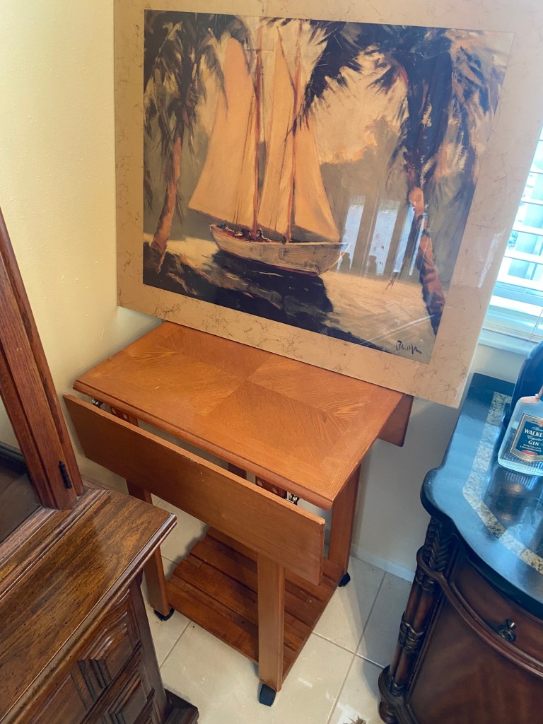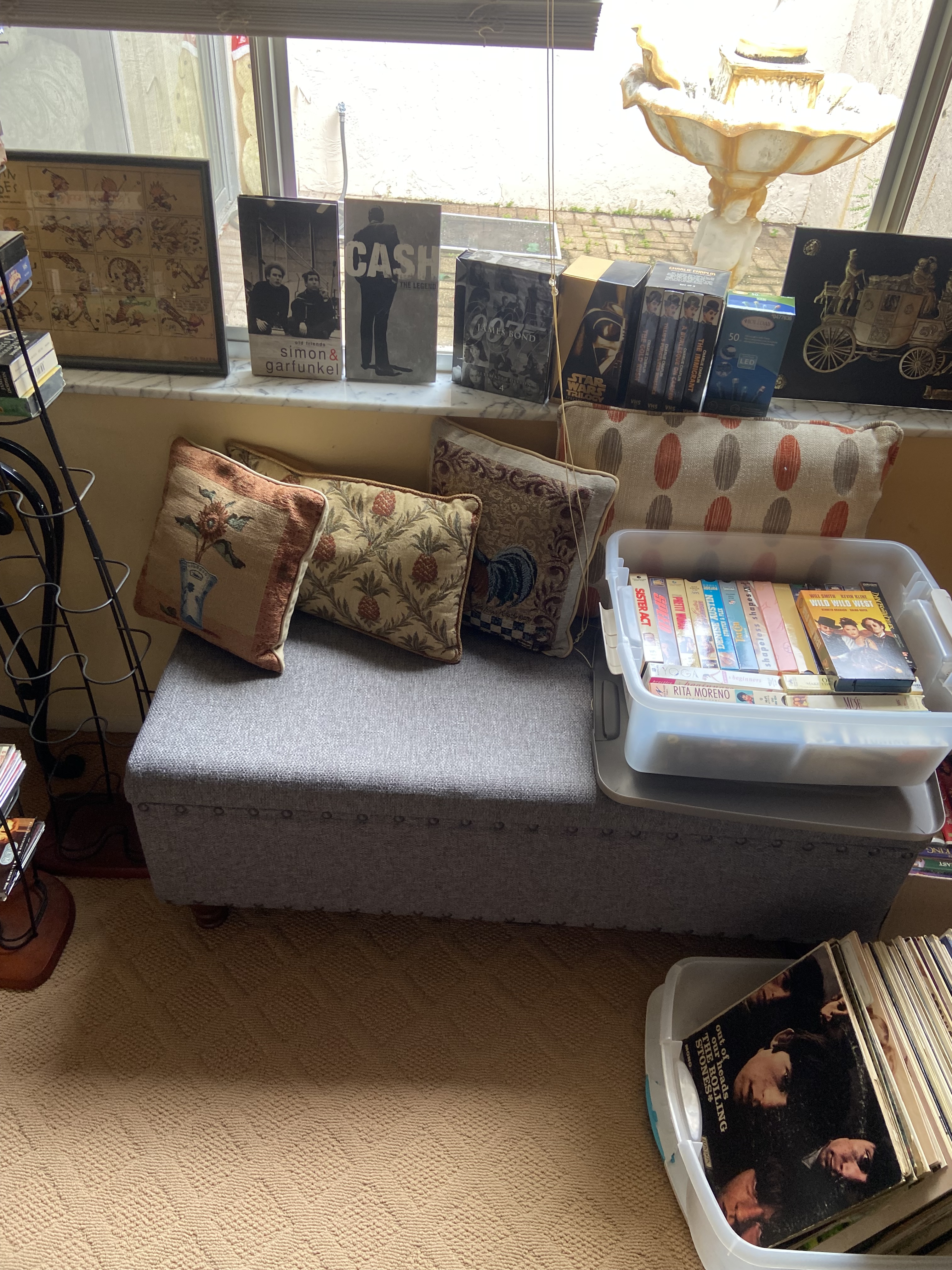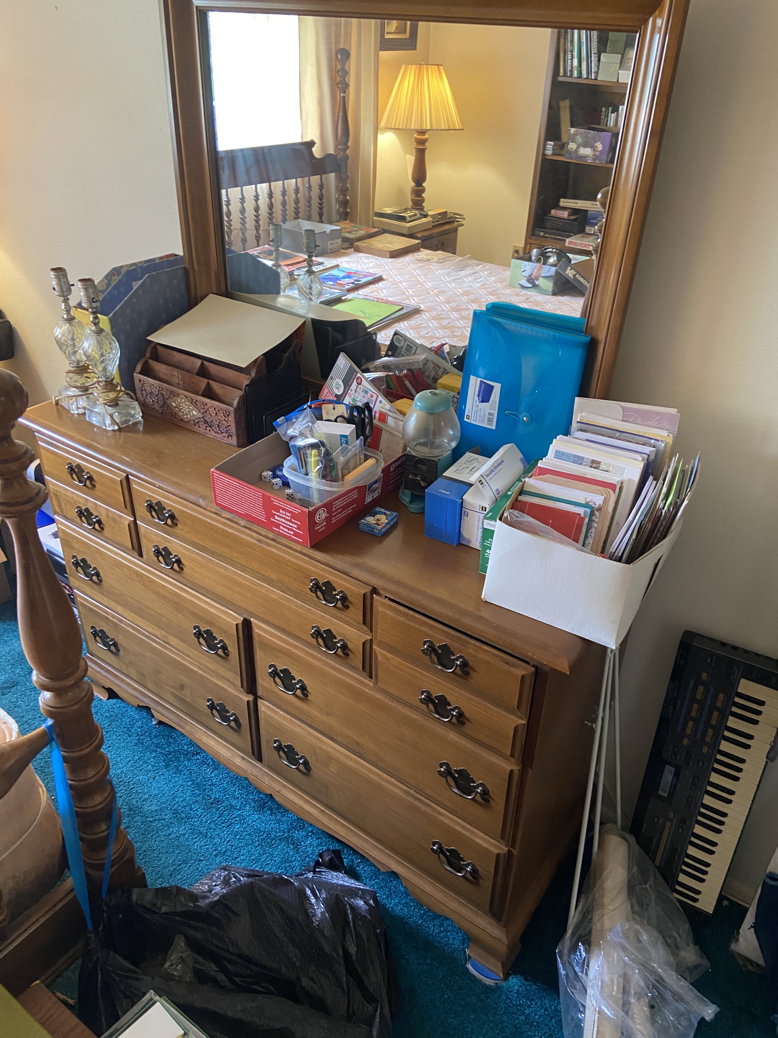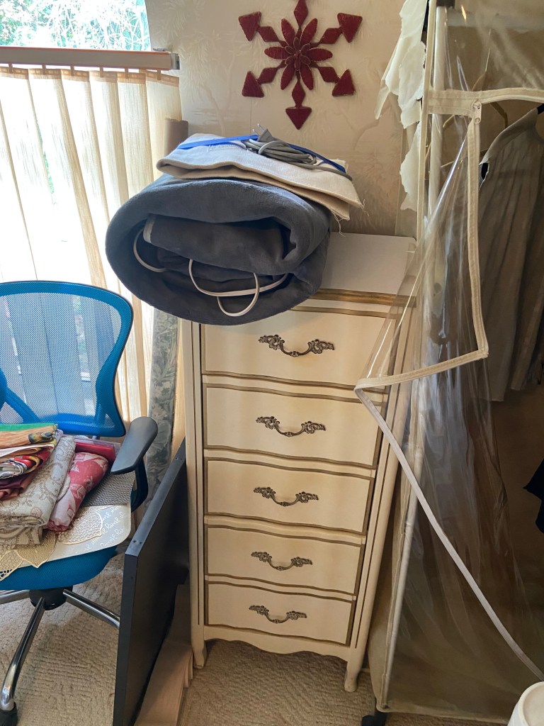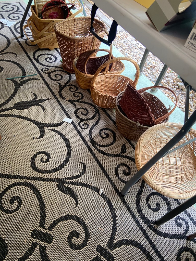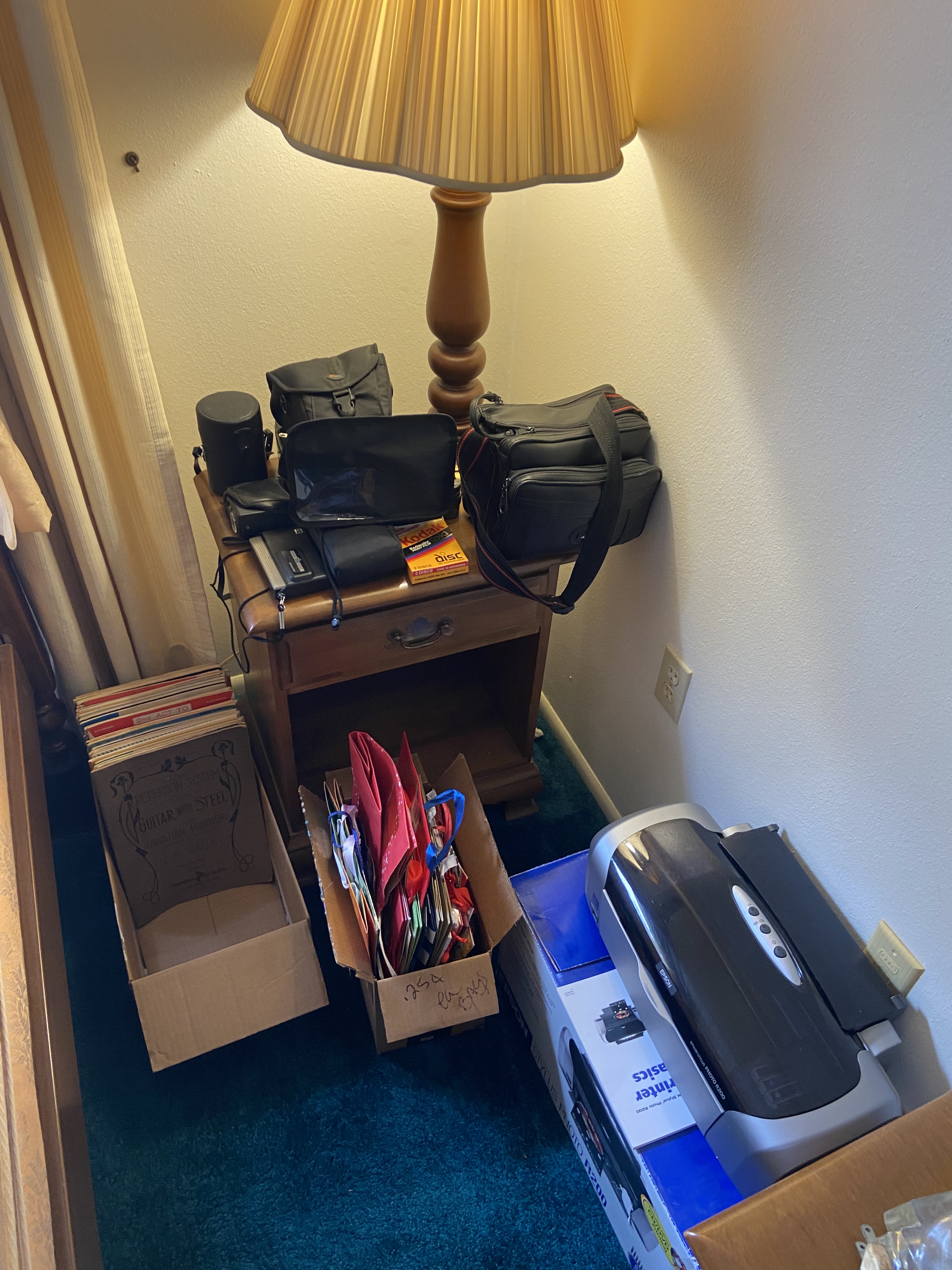 We have Burlington house hutch, marble top buffet, Vintage Collectibles, dining room table with four chairs, Hall tree, Steinbach Nutcracker from Germany, vintage hallway tables, art deco couch, decorator pieces, crystal, large fountain, mid-century armchairs, recliners, three stacking music box tables from Italy, Venus de Milo sculpture, pedestal, mid-century accent tables, curio, model ships, drop leaf dining room, table, and four chairs, marble top sofa table, artwork, CDs, VHS‘s, DVDs, albums, 78s, 45s and cassettes, 50 inch RCA Roku TV, stereo with turntable and cassette player, vintage oriental wooden birdcage, lamps, vases, green sofa, vintage pictures, sculptures, vacuums, room divider, bar area, kitchen, pampered chef, power juicer, Mikasa English Countryside dishes and serving set, vintage Hazel Aras hand painted glass set, glassware, toaster oven, knives and utensils, pots and pans, cookware, serving dishes, roosters, salt and pepper shakers, cups and dishes, canister sets, FA Pawla art Santa Barbara, we have a Christmas wonderland, Fontanini nativity set, department 56, village pieces, ornaments, Santa Claus figures, yard art, Christmas lights, dual patio glider, outdoor chairs, stressless recliner, patio set, storage bins, outdoor wall, art, outdoor cabinets and shelves, Thomasville bedroom set with dresser, high boy, nightstands and headboard, Butler writing desk, linens, high boy dresser, lingerie chest, jewelry boxes, vintage box phone, dolls, stuffed animals, throw pillows, OT fit briefs, shoes, hats, vintage hats, purses, bathroom items, early American dressers, high boy and nightstands, lamps, train sets, Viking Husqvarna sewing machine, bookcases, books, vintage and old books, old sheet music, vintage magazines, cameras, 35 mm cameras, digital cameras, vintage, Disney World, vintage camera accessories, shoe racks, we have hairdressers room, a large number of hairdresser supplies, hair dryer, hairdresser chair, cleaning supplies, art items, garage, three large Coleman storage chess, large Christmas tree, tennis rackets, tools, and much much more.