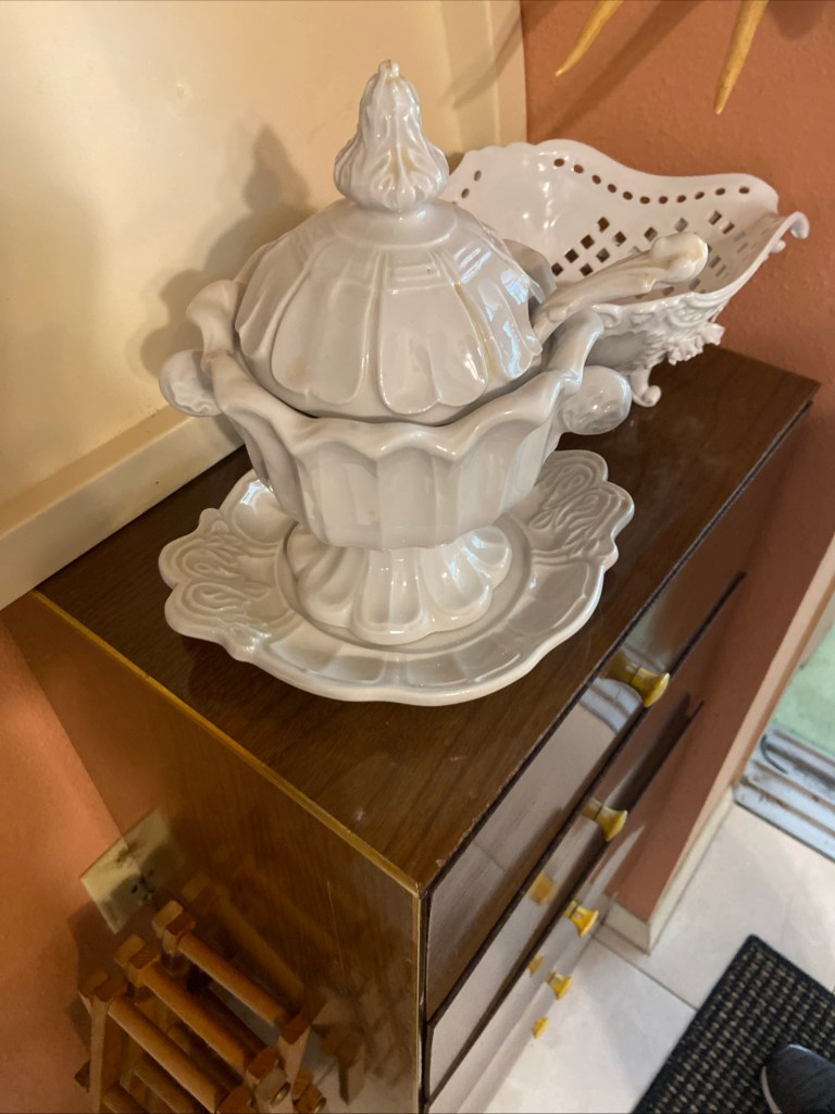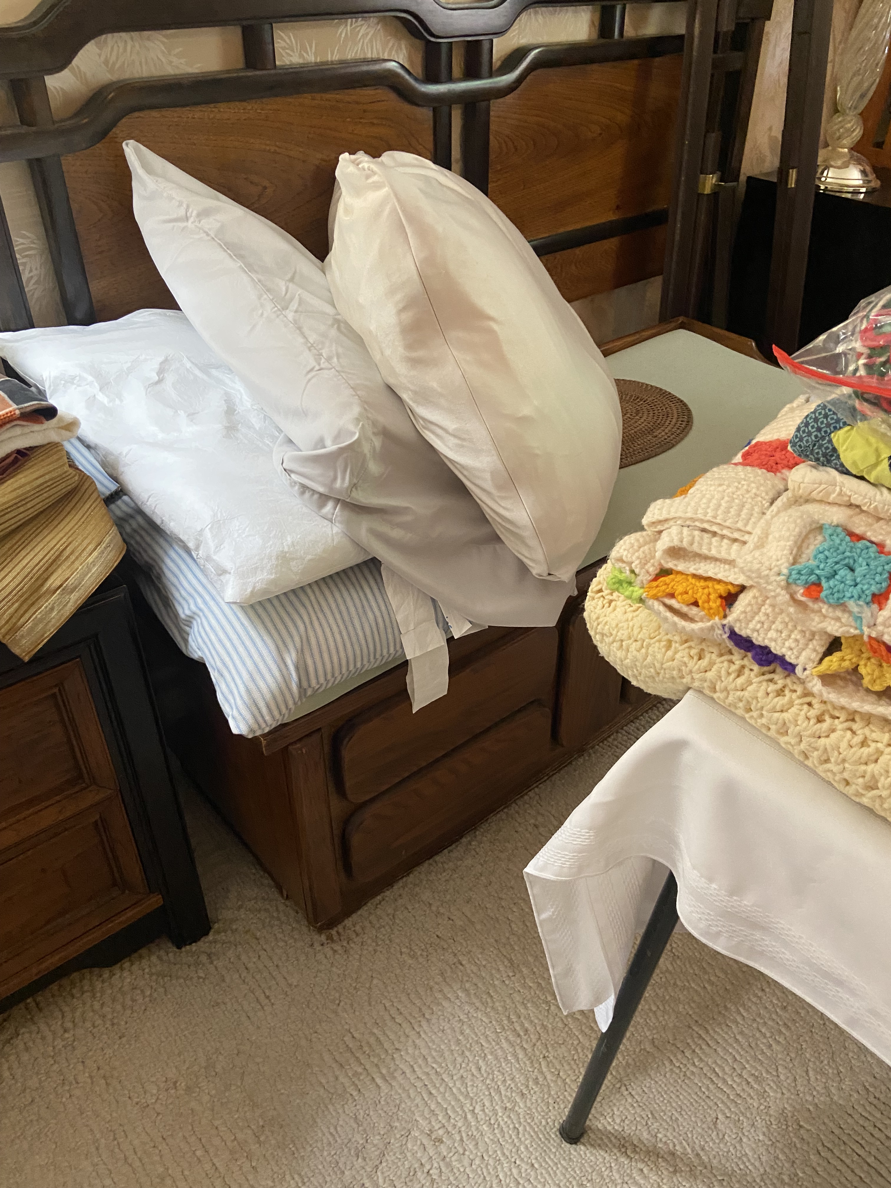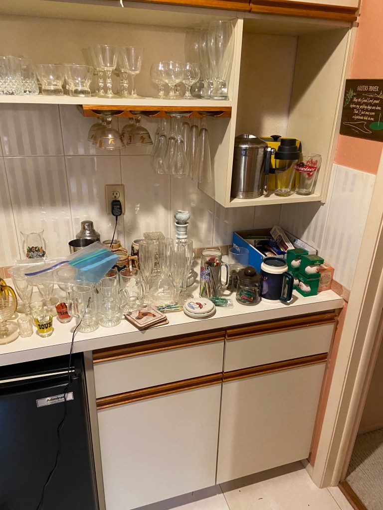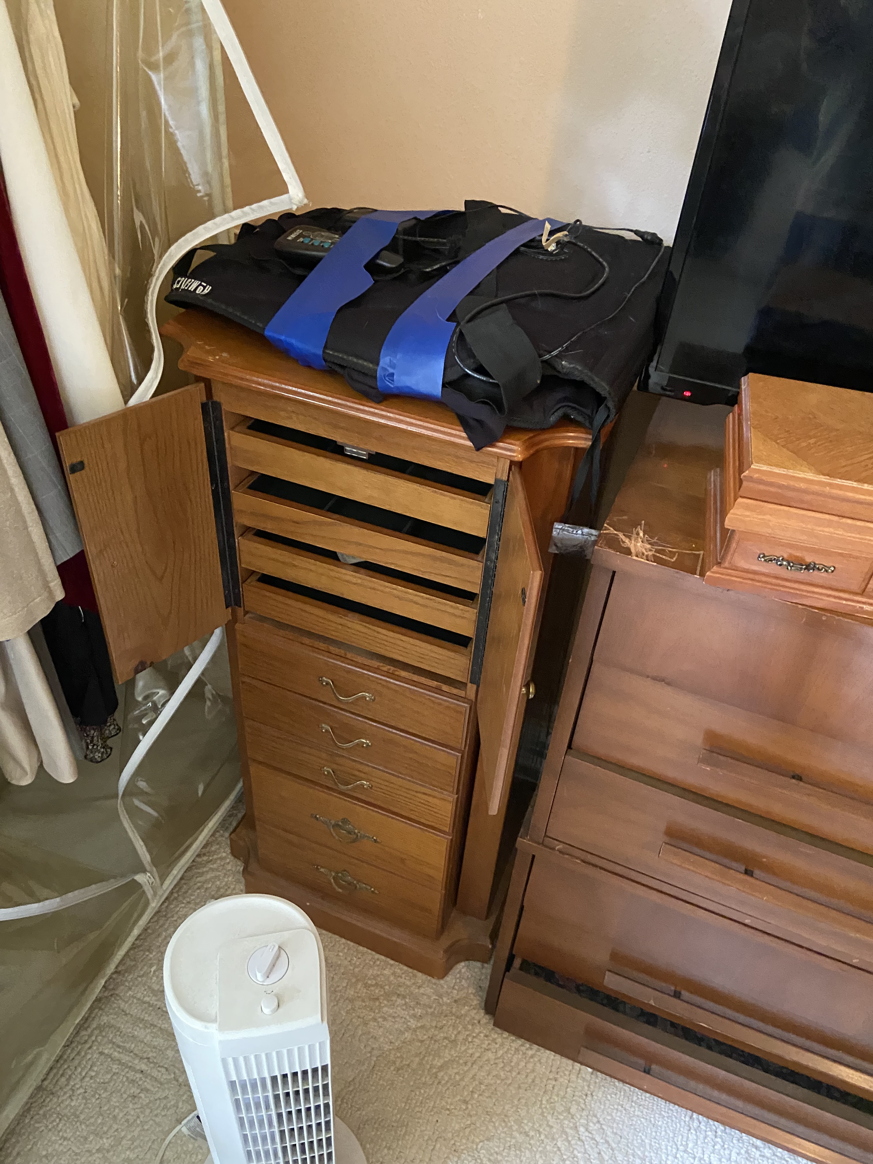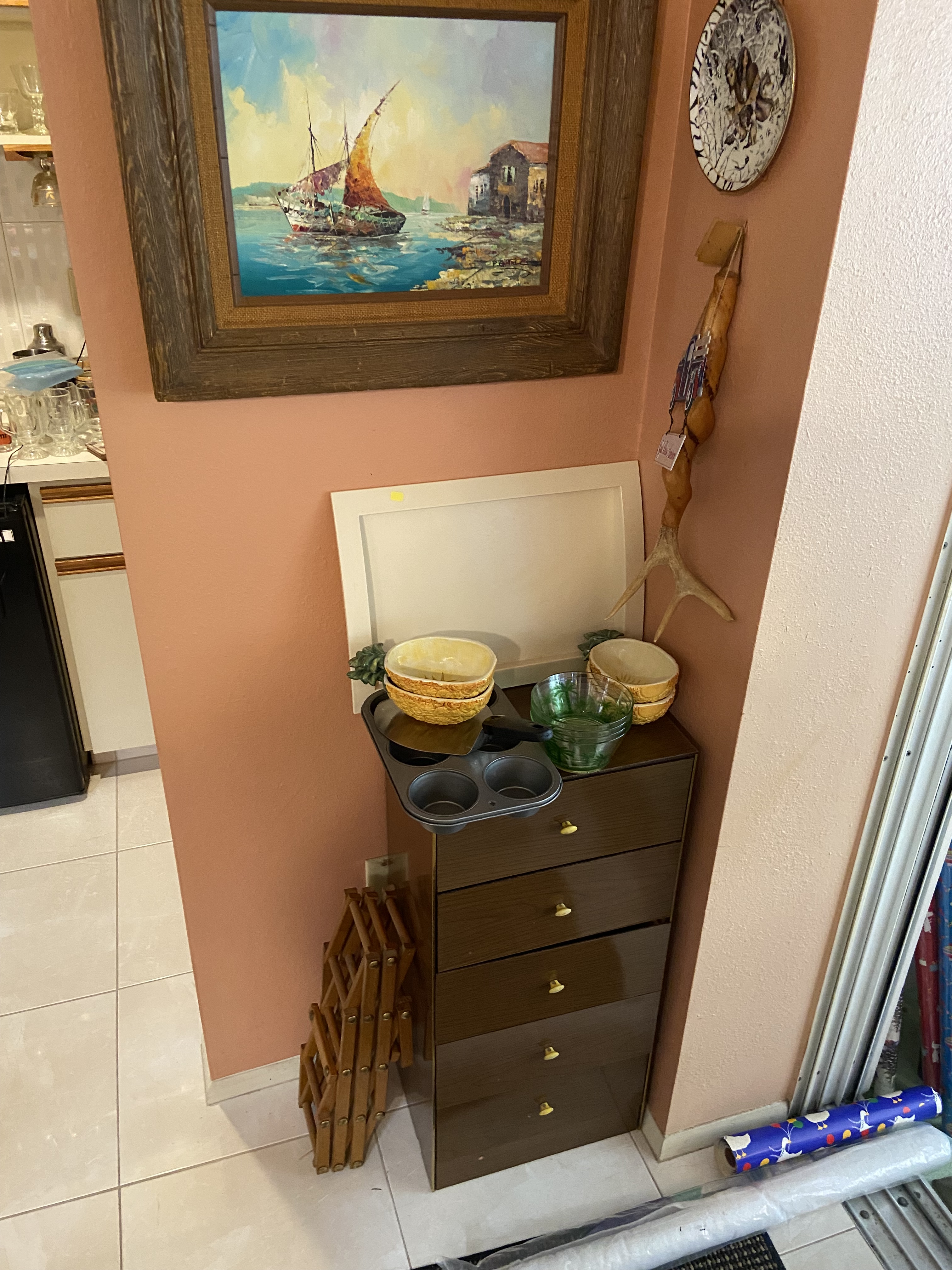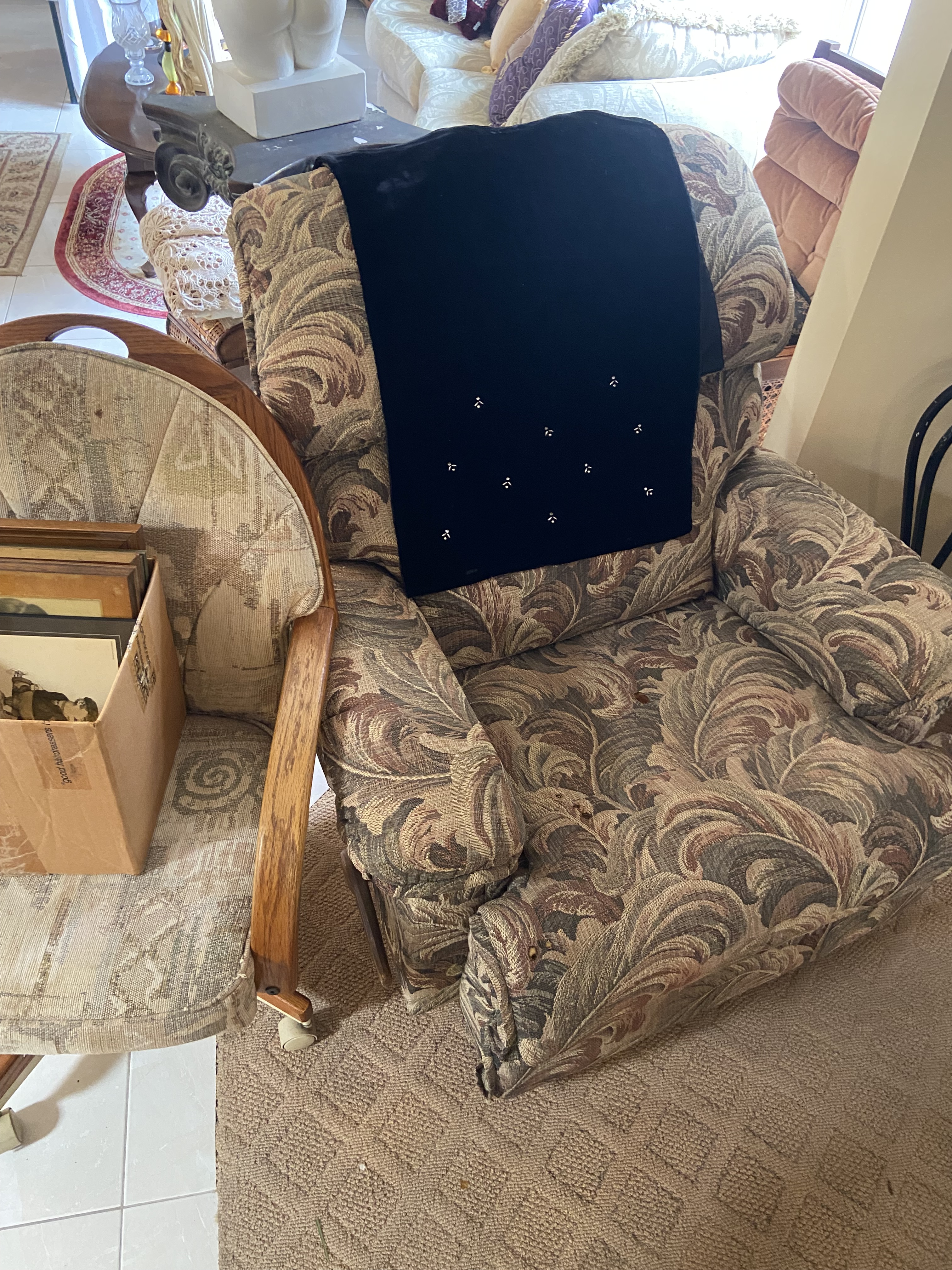 We have Burlington house hutch, marble top buffet, Vintage Collectibles, dining room table with four chairs, Hall tree, Steinbach Nutcracker from Germany, vintage hallway tables, art deco couch, decorator pieces, crystal, large fountain, mid-century armchairs, recliners, three stacking music box tables from Italy, Venus de Milo sculpture, pedestal, mid-century accent tables, curio, model ships, drop leaf dining room, table, and four chairs, marble top sofa table, artwork, CDs, VHS‘s, DVDs, albums, 78s, 45s and cassettes, 50 inch RCA Roku TV, stereo with turntable and cassette player, vintage oriental wooden birdcage, lamps, vases, green sofa, vintage pictures, sculptures, vacuums, room divider, bar area, kitchen, pampered chef, power juicer, Mikasa English Countryside dishes and serving set, vintage Hazel Aras hand painted glass set, glassware, toaster oven, knives and utensils, pots and pans, cookware, serving dishes, roosters, salt and pepper shakers, cups and dishes, canister sets, FA Pawla art Santa Barbara, we have a Christmas wonderland, Fontanini nativity set, department 56, village pieces, ornaments, Santa Claus figures, yard art, Christmas lights, dual patio glider, outdoor chairs, stressless recliner, patio set, storage bins, outdoor wall, art, outdoor cabinets and shelves, Thomasville bedroom set with dresser, high boy, nightstands and headboard, Butler writing desk, linens, high boy dresser, lingerie chest, jewelry boxes, vintage box phone, dolls, stuffed animals, throw pillows, OT fit briefs, shoes, hats, vintage hats, purses, bathroom items, early American dressers, high boy and nightstands, lamps, train sets, Viking Husqvarna sewing machine, bookcases, books, vintage and old books, old sheet music, vintage magazines, cameras, 35 mm cameras, digital cameras, vintage, Disney World, vintage camera accessories, shoe racks, we have hairdressers room, a large number of hairdresser supplies, hair dryer, hairdresser chair, cleaning supplies, art items, garage, three large Coleman storage chess, large Christmas tree, tennis rackets, tools, and much much more.
