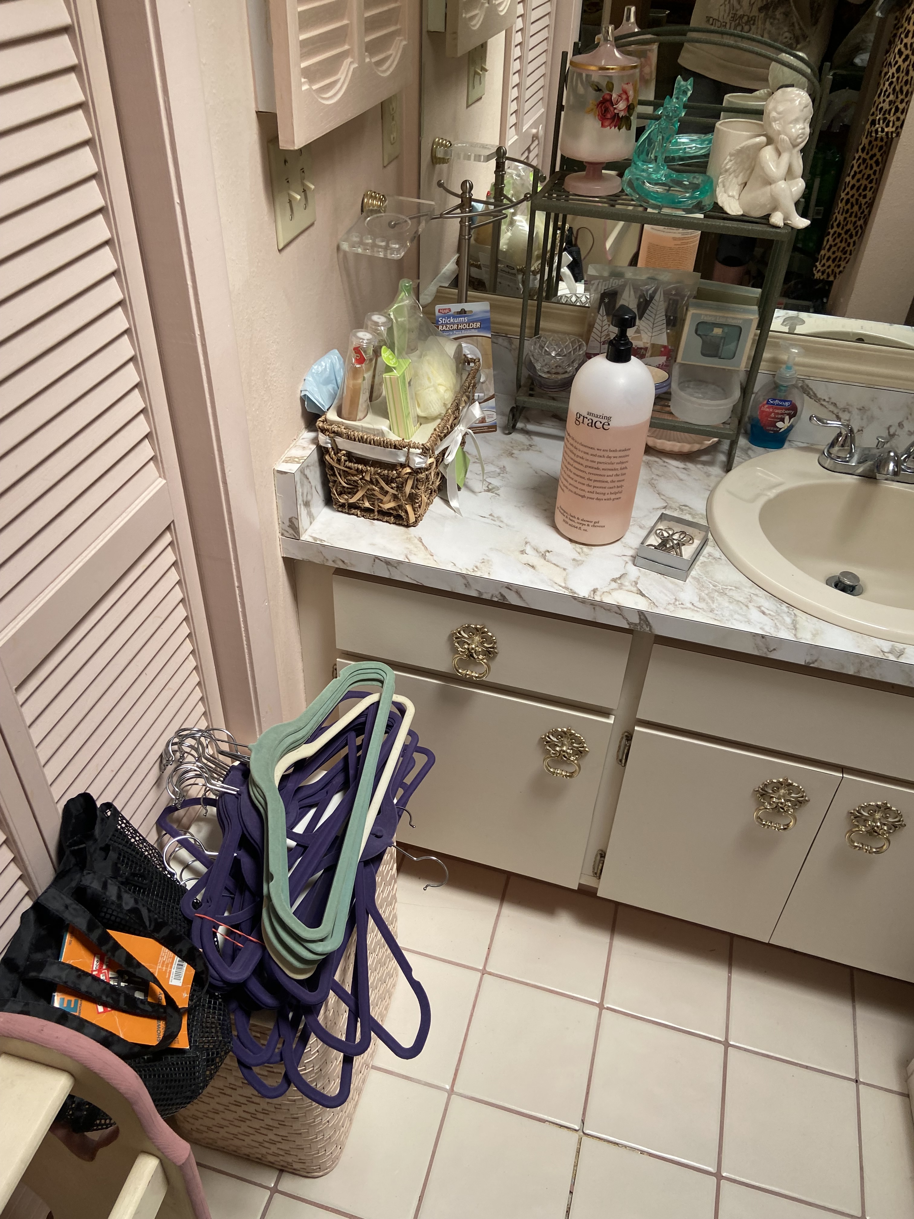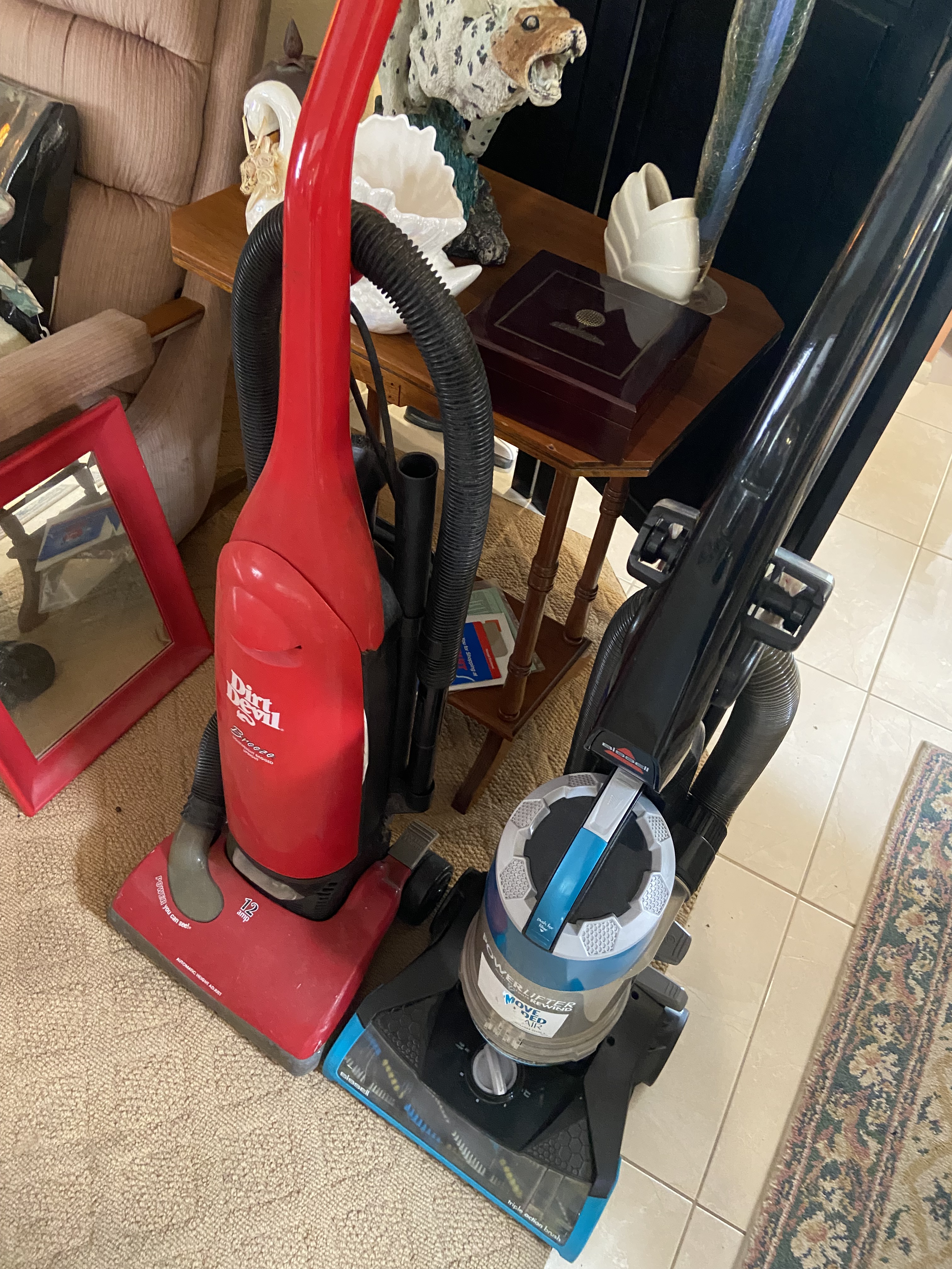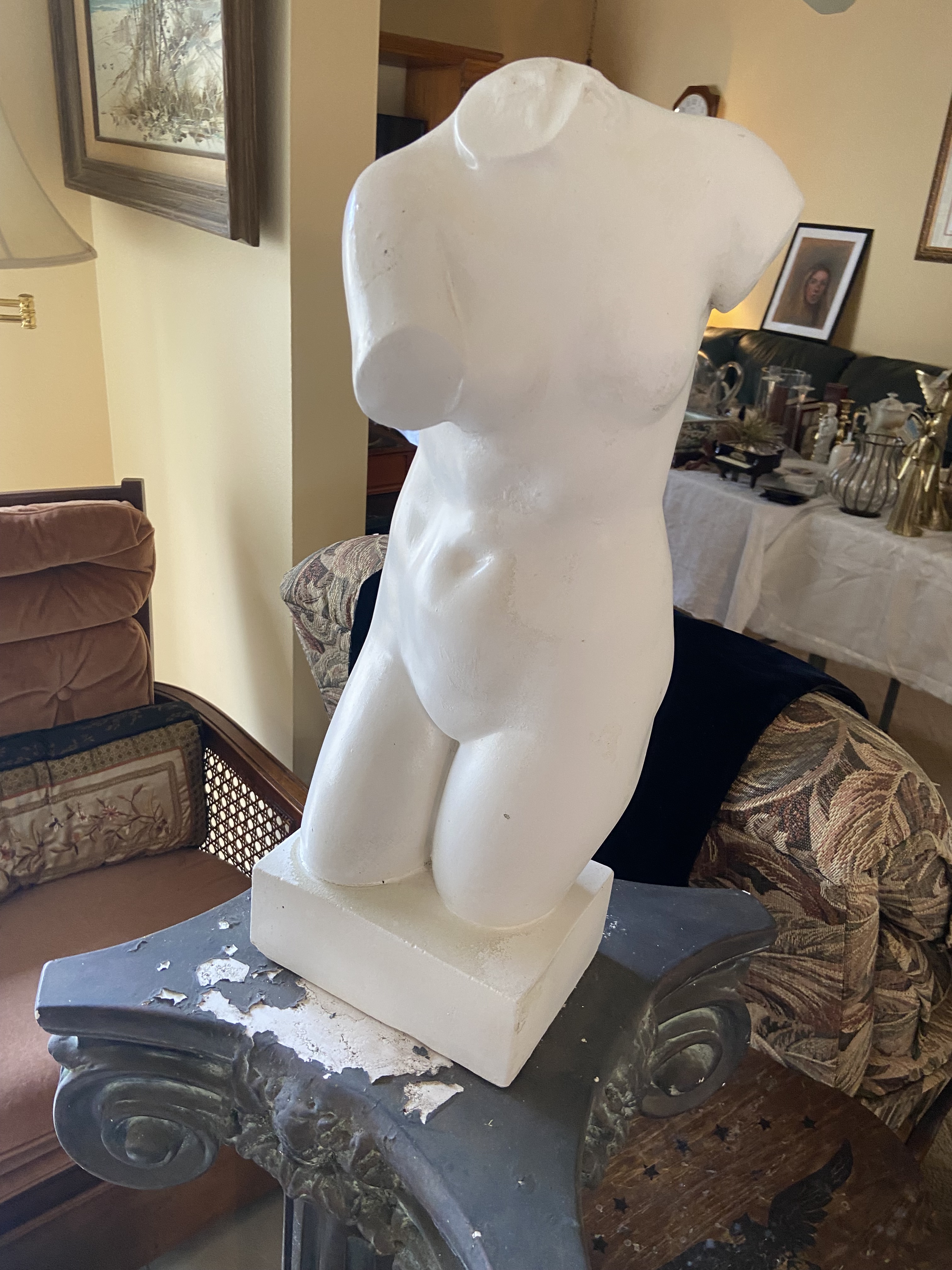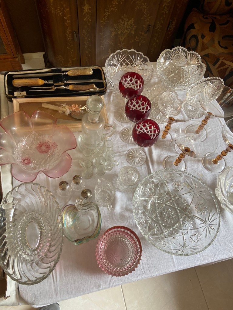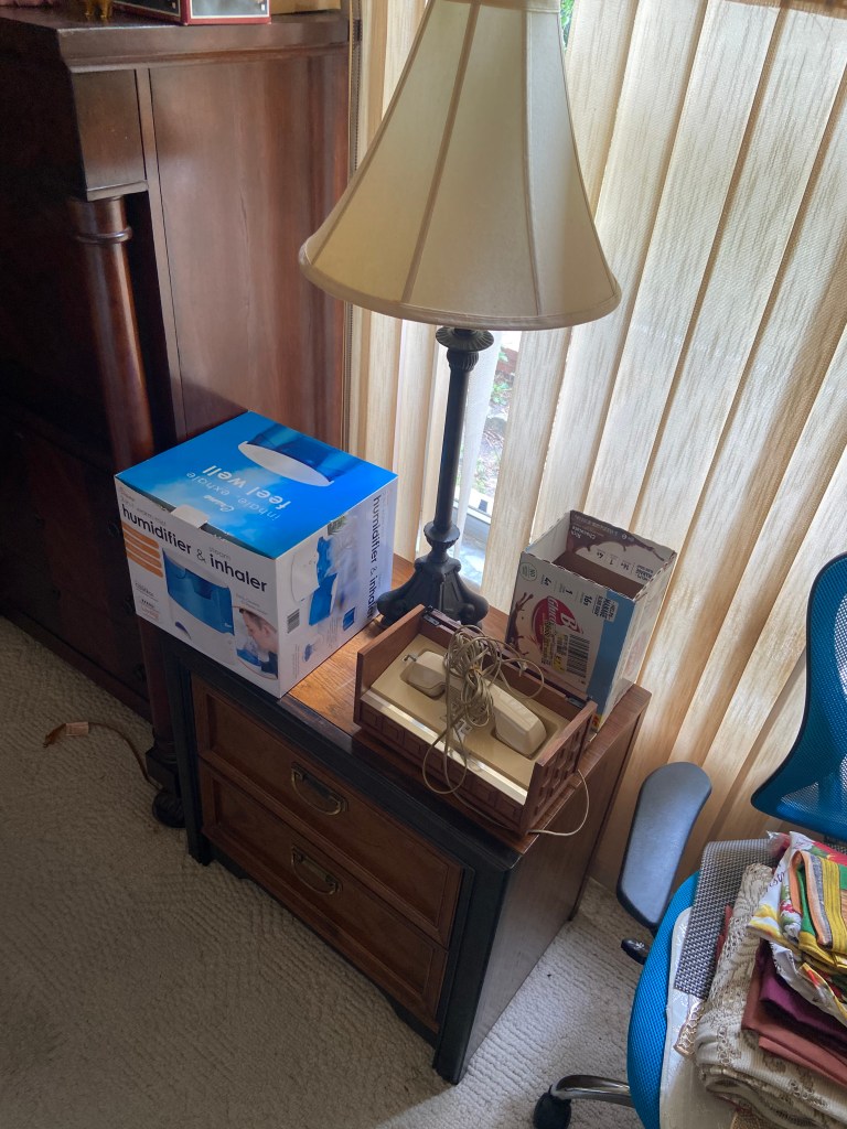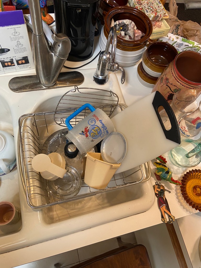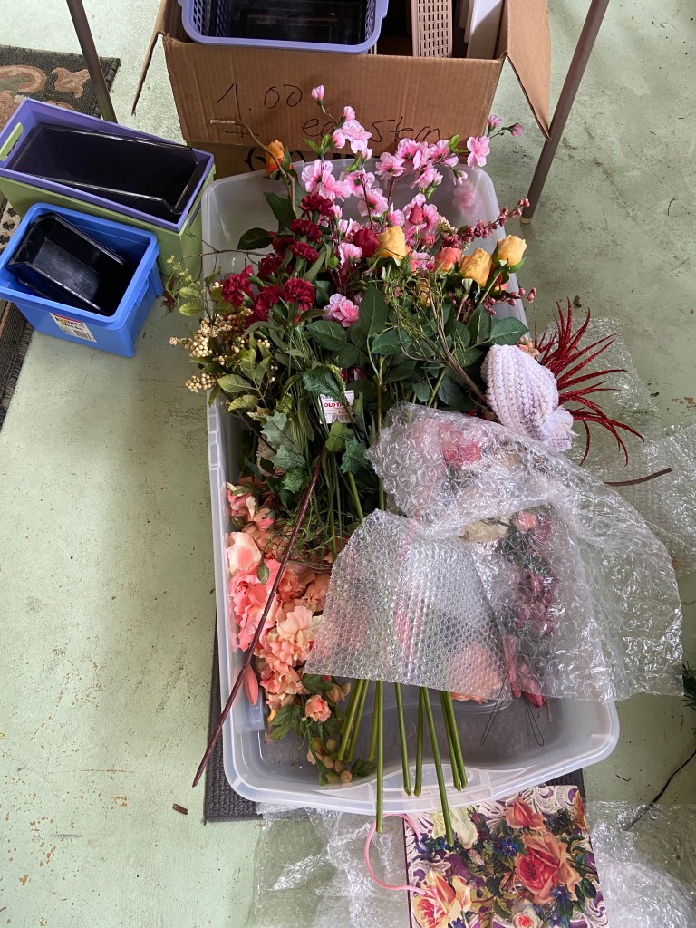 We have Burlington house hutch, marble top buffet, Vintage Collectibles, dining room table with four chairs, Hall tree, Steinbach Nutcracker from Germany, vintage hallway tables, art deco couch, decorator pieces, crystal, large fountain, mid-century armchairs, recliners, three stacking music box tables from Italy, Venus de Milo sculpture, pedestal, mid-century accent tables, curio, model ships, drop leaf dining room, table, and four chairs, marble top sofa table, artwork, CDs, VHS‘s, DVDs, albums, 78s, 45s and cassettes, 50 inch RCA Roku TV, stereo with turntable and cassette player, vintage oriental wooden birdcage, lamps, vases, green sofa, vintage pictures, sculptures, vacuums, room divider, bar area, kitchen, pampered chef, power juicer, Mikasa English Countryside dishes and serving set, vintage Hazel Aras hand painted glass set, glassware, toaster oven, knives and utensils, pots and pans, cookware, serving dishes, roosters, salt and pepper shakers, cups and dishes, canister sets, FA Pawla art Santa Barbara, we have a Christmas wonderland, Fontanini nativity set, department 56, village pieces, ornaments, Santa Claus figures, yard art, Christmas lights, dual patio glider, outdoor chairs, stressless recliner, patio set, storage bins, outdoor wall, art, outdoor cabinets and shelves, Thomasville bedroom set with dresser, high boy, nightstands and headboard, Butler writing desk, linens, high boy dresser, lingerie chest, jewelry boxes, vintage box phone, dolls, stuffed animals, throw pillows, OT fit briefs, shoes, hats, vintage hats, purses, bathroom items, early American dressers, high boy and nightstands, lamps, train sets, Viking Husqvarna sewing machine, bookcases, books, vintage and old books, old sheet music, vintage magazines, cameras, 35 mm cameras, digital cameras, vintage, Disney World, vintage camera accessories, shoe racks, we have hairdressers room, a large number of hairdresser supplies, hair dryer, hairdresser chair, cleaning supplies, art items, garage, three large Coleman storage chess, large Christmas tree, tennis rackets, tools, and much much more.