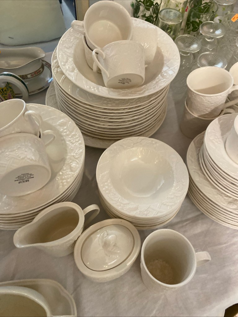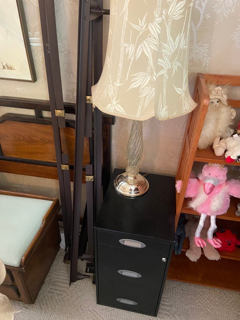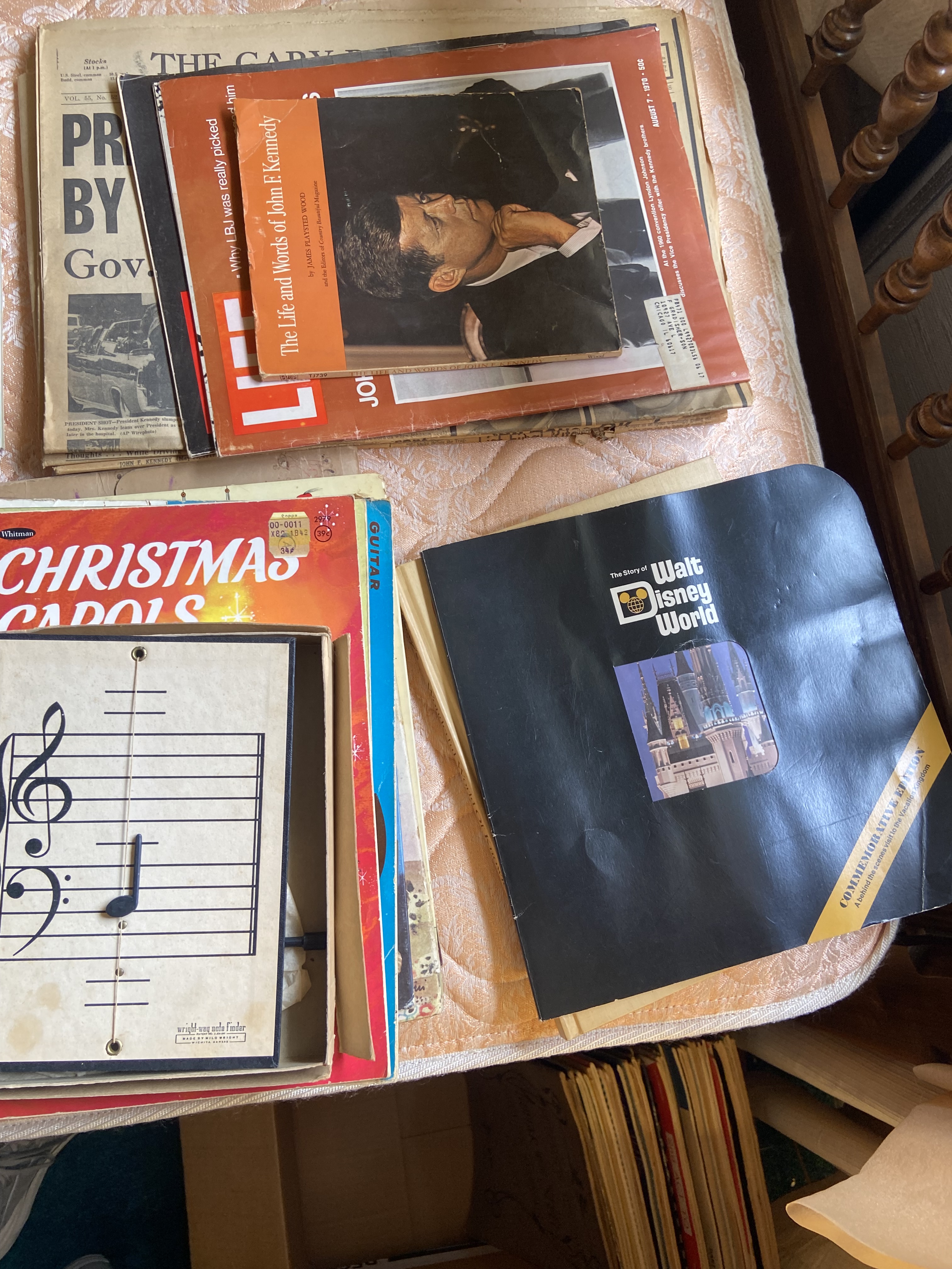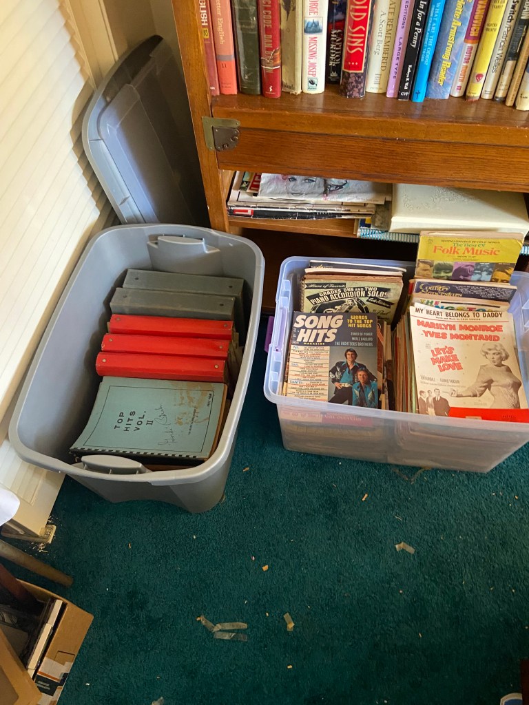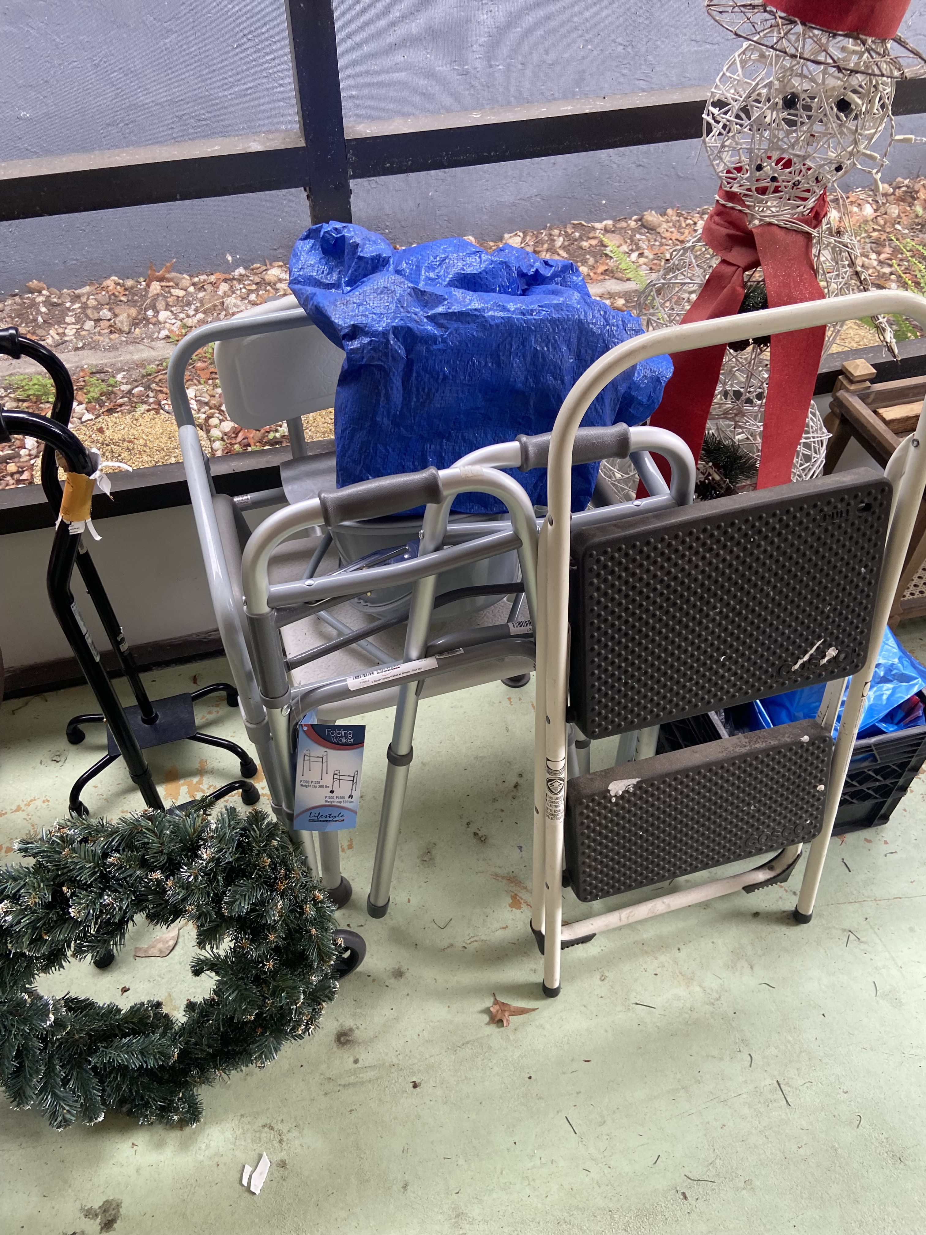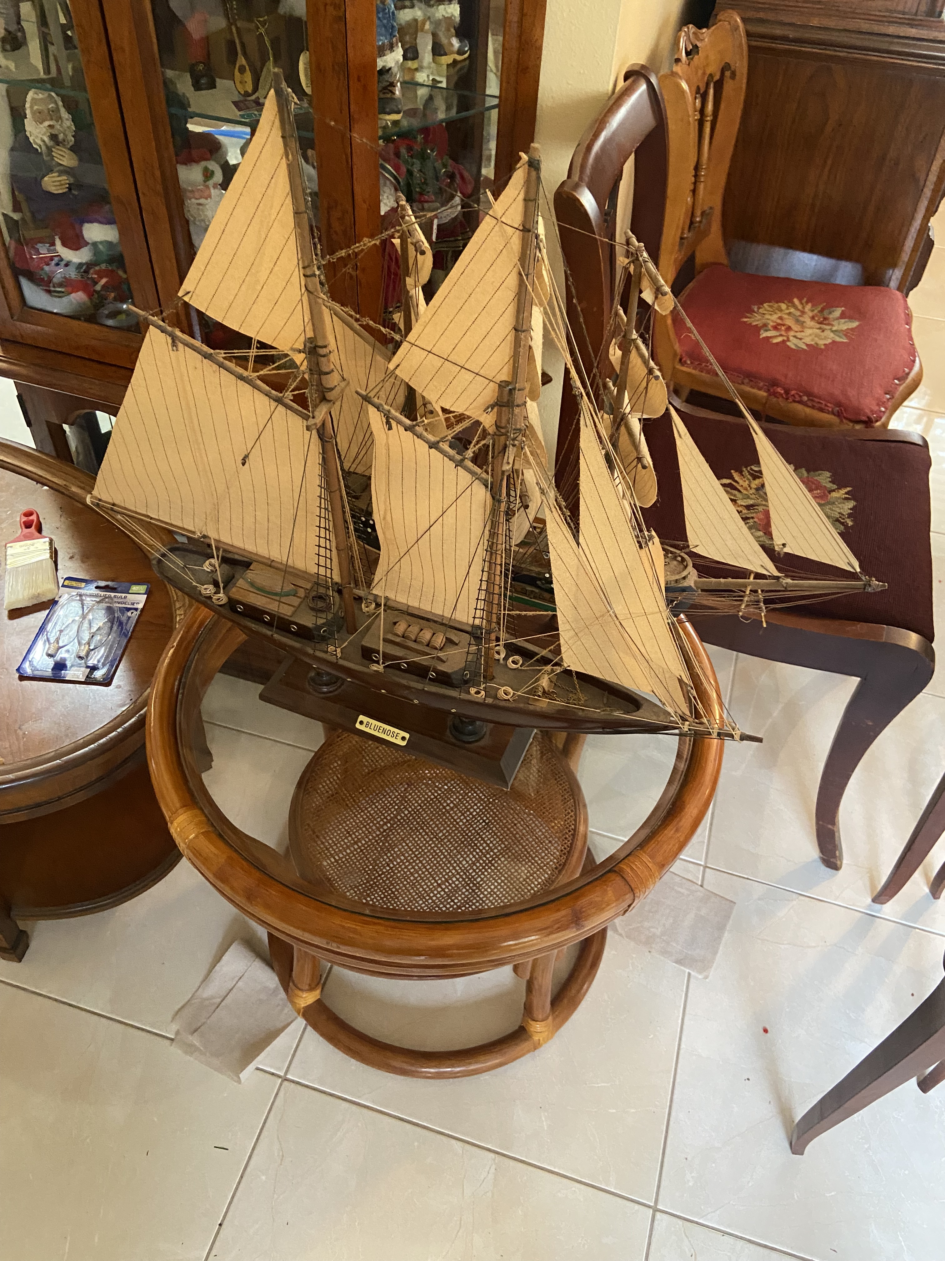 We have Burlington house hutch, marble top buffet, Vintage Collectibles, dining room table with four chairs, Hall tree, Steinbach Nutcracker from Germany, vintage hallway tables, art deco couch, decorator pieces, crystal, large fountain, mid-century armchairs, recliners, three stacking music box tables from Italy, Venus de Milo sculpture, pedestal, mid-century accent tables, curio, model ships, drop leaf dining room, table, and four chairs, marble top sofa table, artwork, CDs, VHS‘s, DVDs, albums, 78s, 45s and cassettes, 50 inch RCA Roku TV, stereo with turntable and cassette player, vintage oriental wooden birdcage, lamps, vases, green sofa, vintage pictures, sculptures, vacuums, room divider, bar area, kitchen, pampered chef, power juicer, Mikasa English Countryside dishes and serving set, vintage Hazel Aras hand painted glass set, glassware, toaster oven, knives and utensils, pots and pans, cookware, serving dishes, roosters, salt and pepper shakers, cups and dishes, canister sets, FA Pawla art Santa Barbara, we have a Christmas wonderland, Fontanini nativity set, department 56, village pieces, ornaments, Santa Claus figures, yard art, Christmas lights, dual patio glider, outdoor chairs, stressless recliner, patio set, storage bins, outdoor wall, art, outdoor cabinets and shelves, Thomasville bedroom set with dresser, high boy, nightstands and headboard, Butler writing desk, linens, high boy dresser, lingerie chest, jewelry boxes, vintage box phone, dolls, stuffed animals, throw pillows, OT fit briefs, shoes, hats, vintage hats, purses, bathroom items, early American dressers, high boy and nightstands, lamps, train sets, Viking Husqvarna sewing machine, bookcases, books, vintage and old books, old sheet music, vintage magazines, cameras, 35 mm cameras, digital cameras, vintage, Disney World, vintage camera accessories, shoe racks, we have hairdressers room, a large number of hairdresser supplies, hair dryer, hairdresser chair, cleaning supplies, art items, garage, three large Coleman storage chess, large Christmas tree, tennis rackets, tools, and much much more.