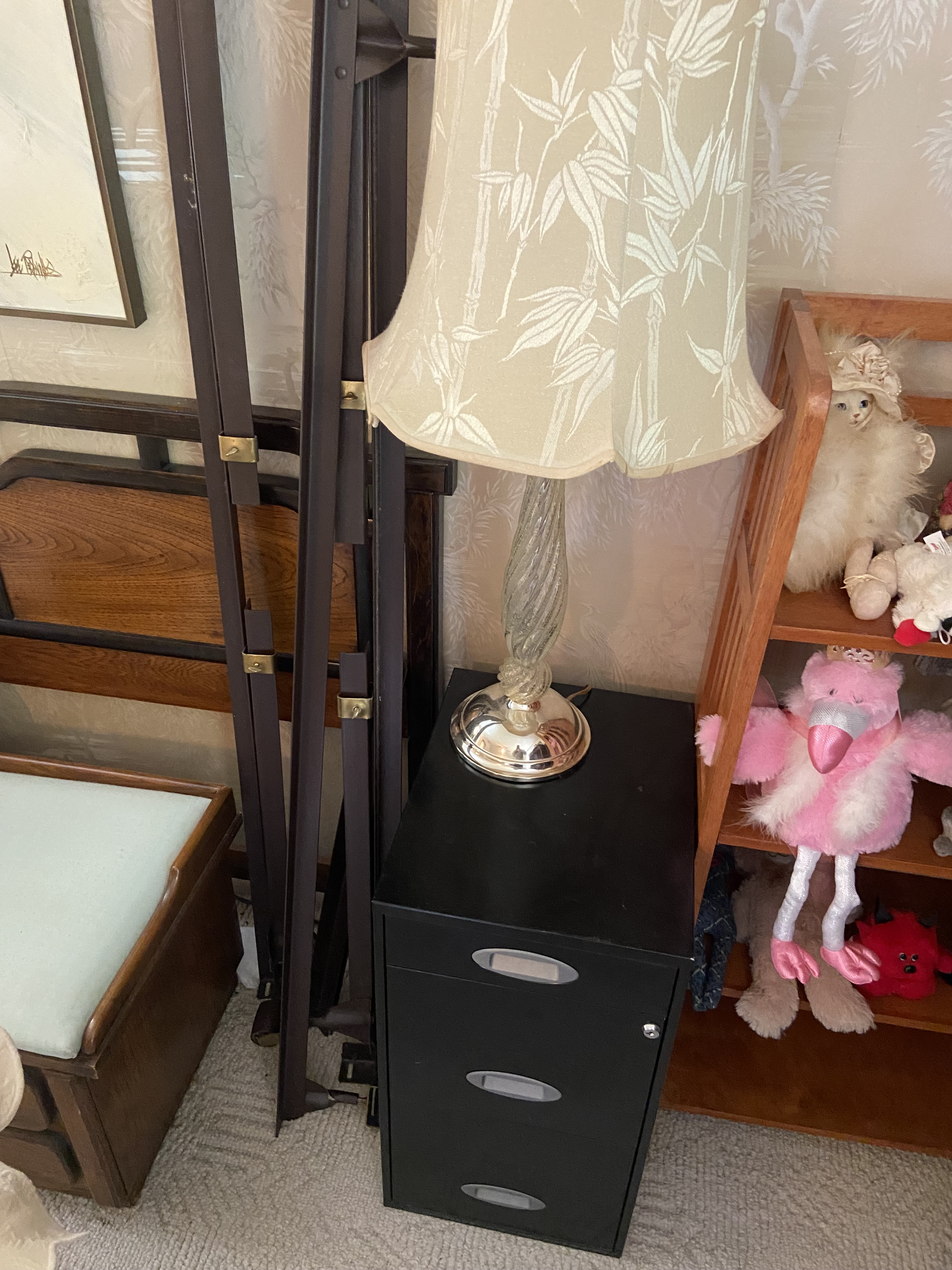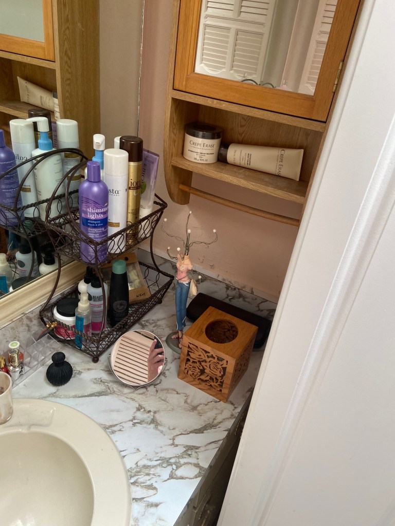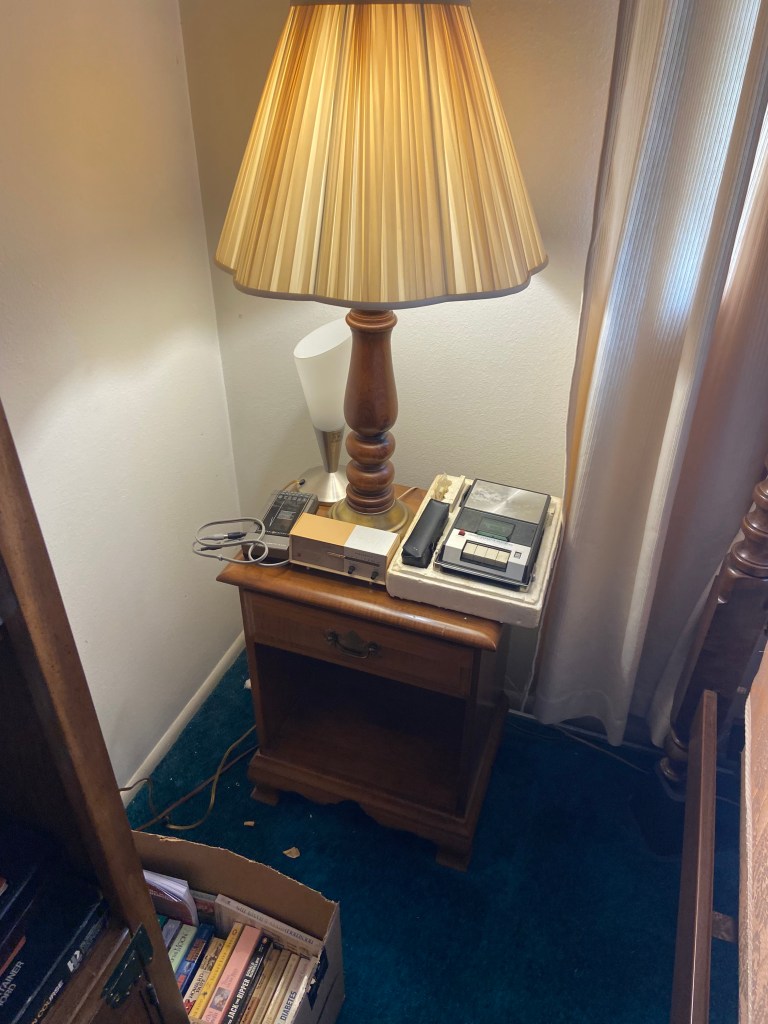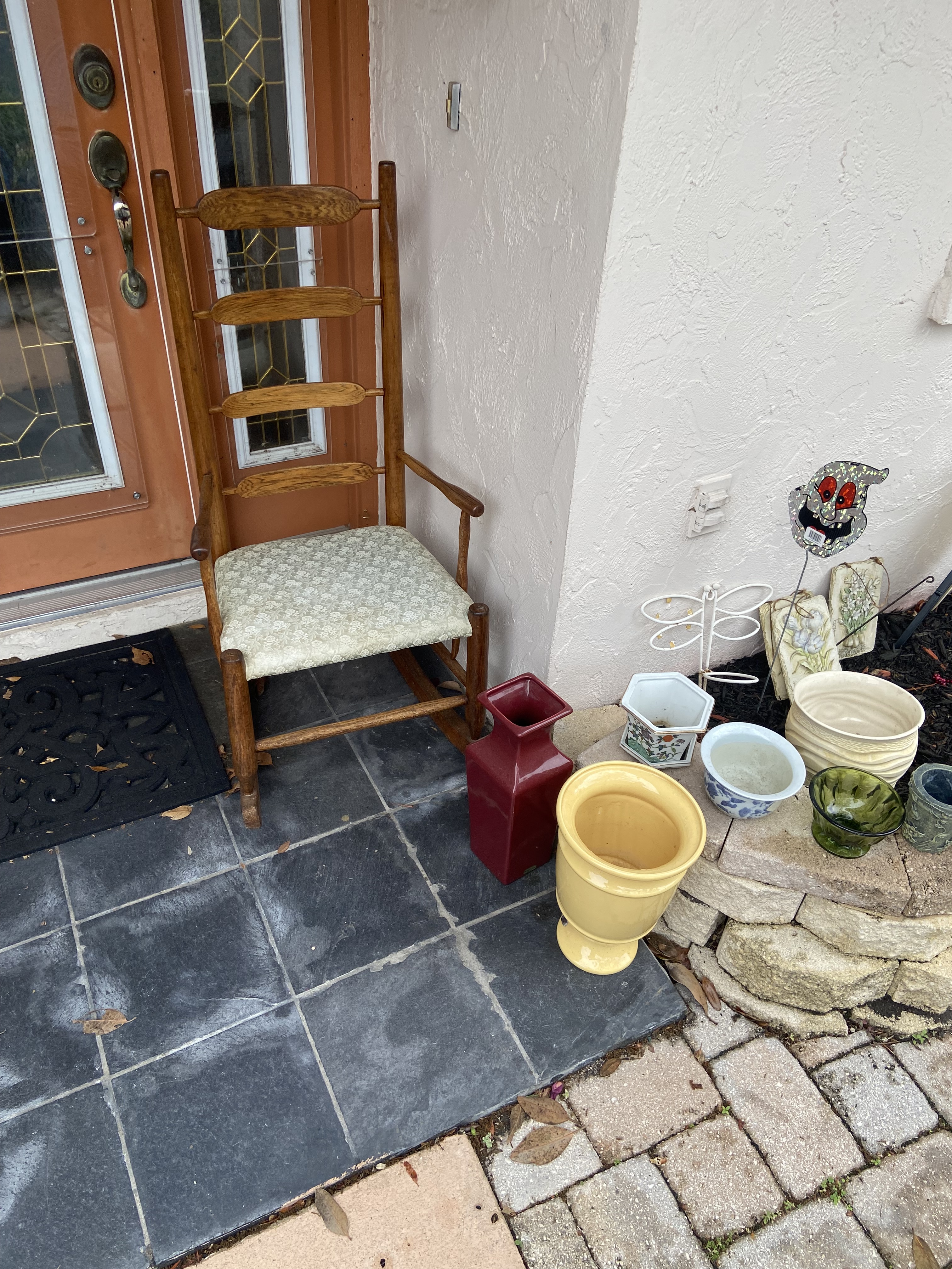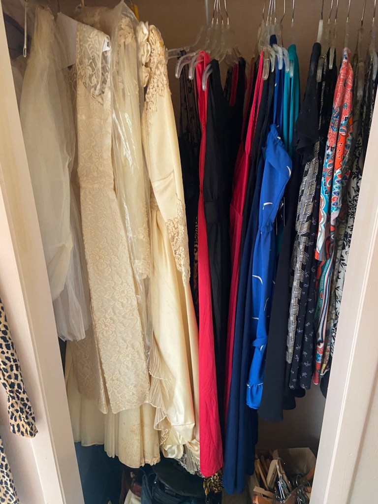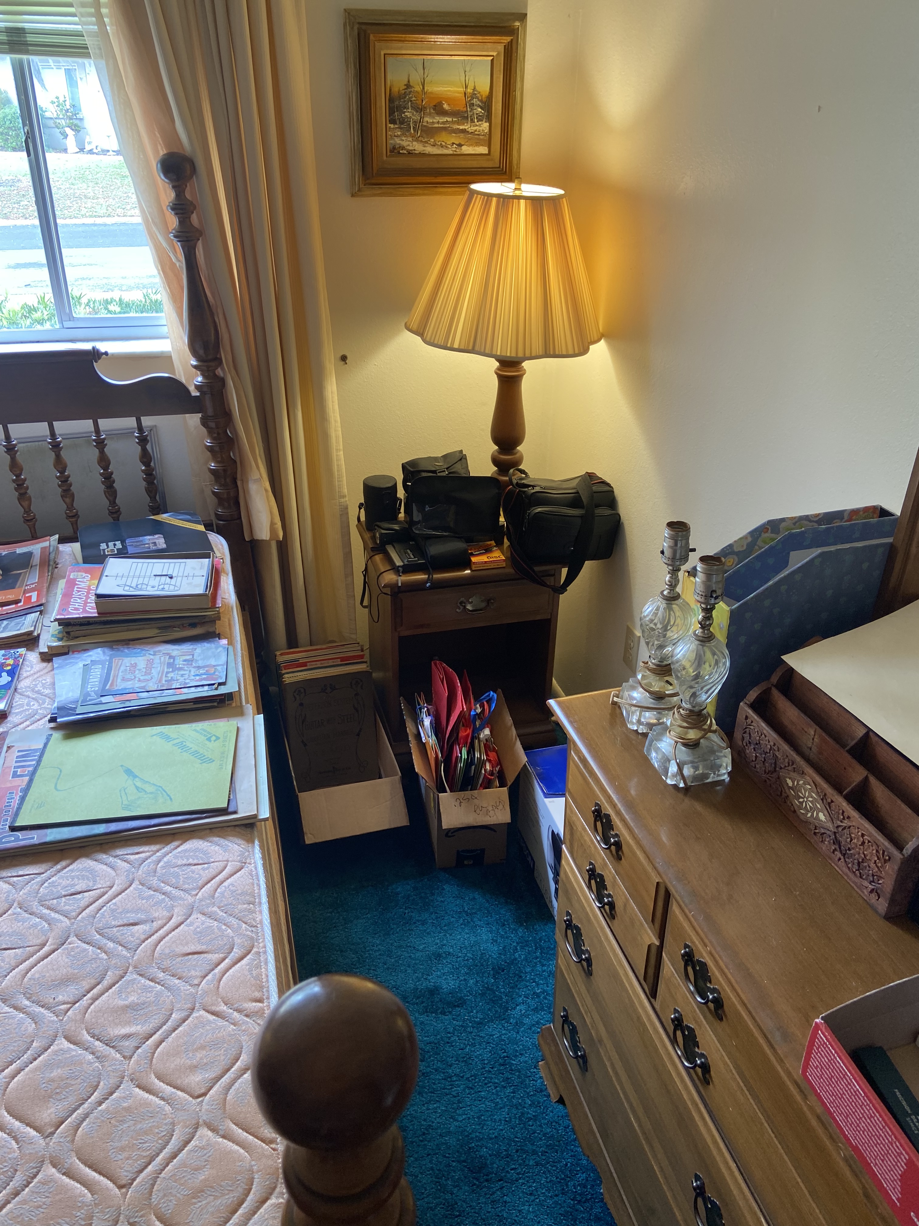 We have Burlington house hutch, marble top buffet, Vintage Collectibles, dining room table with four chairs, Hall tree, Steinbach Nutcracker from Germany, vintage hallway tables, art deco couch, decorator pieces, crystal, large fountain, mid-century armchairs, recliners, three stacking music box tables from Italy, Venus de Milo sculpture, pedestal, mid-century accent tables, curio, model ships, drop leaf dining room, table, and four chairs, marble top sofa table, artwork, CDs, VHS‘s, DVDs, albums, 78s, 45s and cassettes, 50 inch RCA Roku TV, stereo with turntable and cassette player, vintage oriental wooden birdcage, lamps, vases, green sofa, vintage pictures, sculptures, vacuums, room divider, bar area, kitchen, pampered chef, power juicer, Mikasa English Countryside dishes and serving set, vintage Hazel Aras hand painted glass set, glassware, toaster oven, knives and utensils, pots and pans, cookware, serving dishes, roosters, salt and pepper shakers, cups and dishes, canister sets, FA Pawla art Santa Barbara, we have a Christmas wonderland, Fontanini nativity set, department 56, village pieces, ornaments, Santa Claus figures, yard art, Christmas lights, dual patio glider, outdoor chairs, stressless recliner, patio set, storage bins, outdoor wall, art, outdoor cabinets and shelves, Thomasville bedroom set with dresser, high boy, nightstands and headboard, Butler writing desk, linens, high boy dresser, lingerie chest, jewelry boxes, vintage box phone, dolls, stuffed animals, throw pillows, OT fit briefs, shoes, hats, vintage hats, purses, bathroom items, early American dressers, high boy and nightstands, lamps, train sets, Viking Husqvarna sewing machine, bookcases, books, vintage and old books, old sheet music, vintage magazines, cameras, 35 mm cameras, digital cameras, vintage, Disney World, vintage camera accessories, shoe racks, we have hairdressers room, a large number of hairdresser supplies, hair dryer, hairdresser chair, cleaning supplies, art items, garage, three large Coleman storage chess, large Christmas tree, tennis rackets, tools, and much much more.