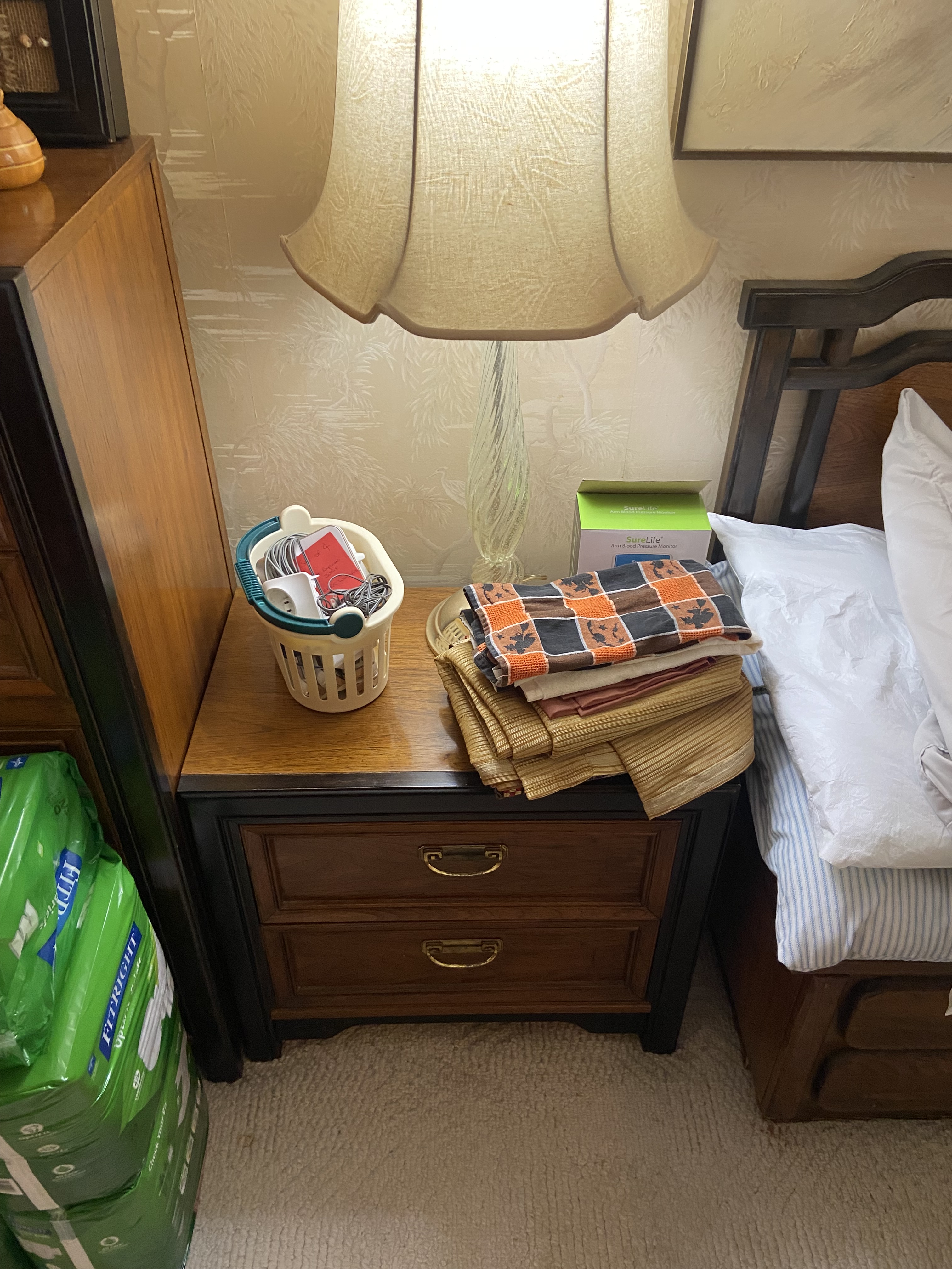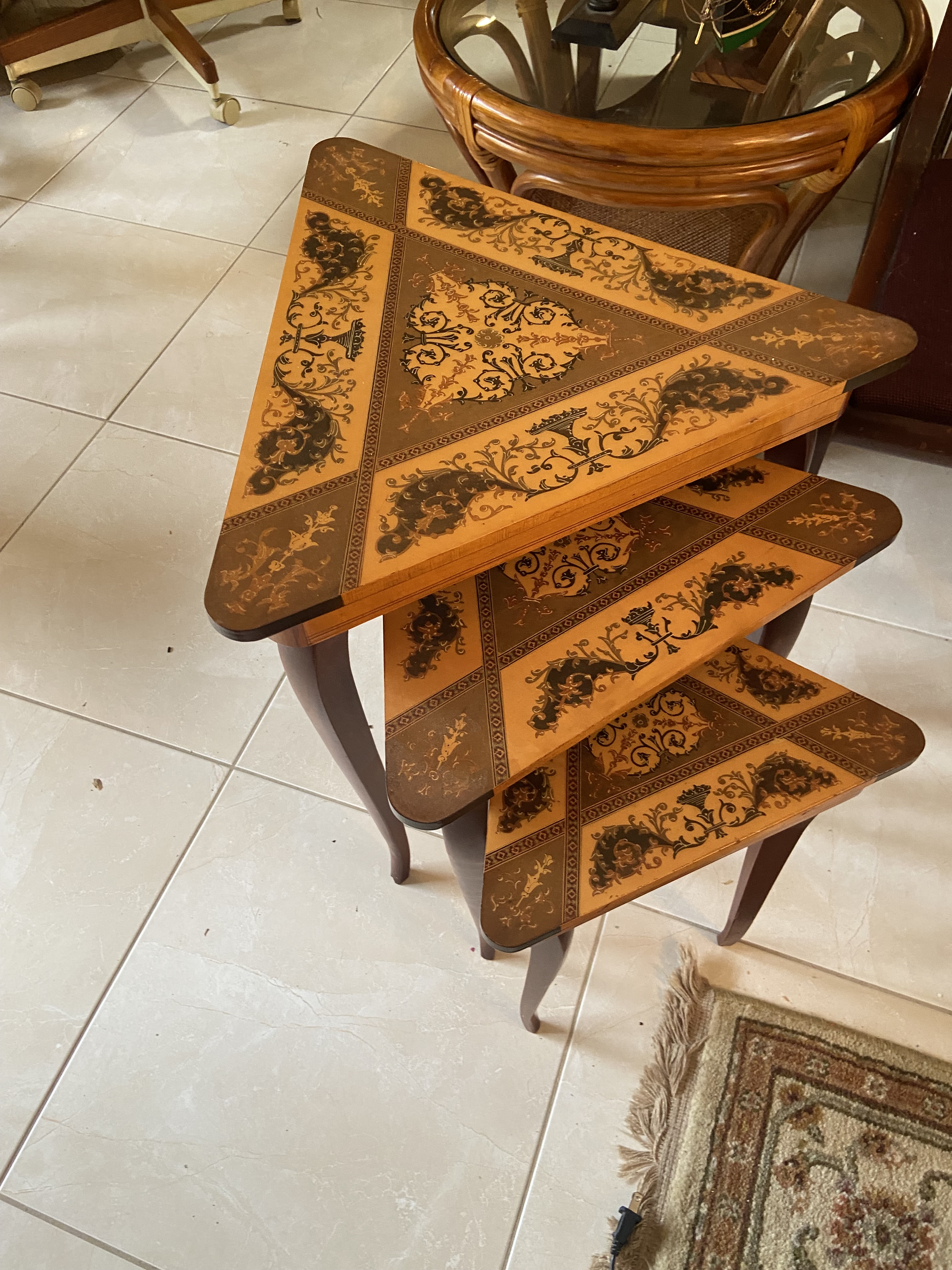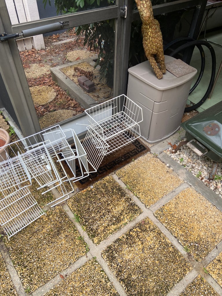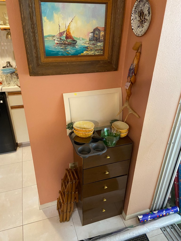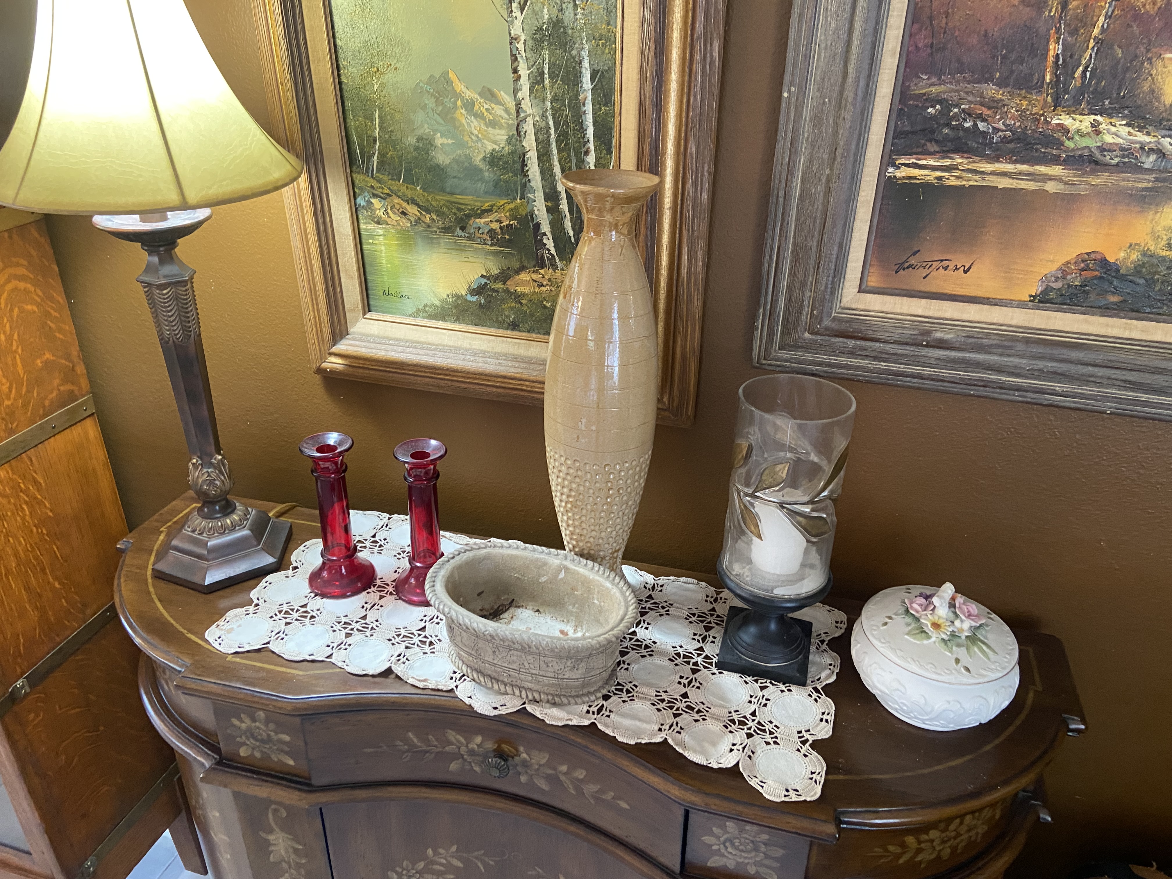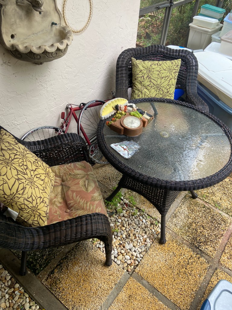 We have Burlington house hutch, marble top buffet, Vintage Collectibles, dining room table with four chairs, Hall tree, Steinbach Nutcracker from Germany, vintage hallway tables, art deco couch, decorator pieces, crystal, large fountain, mid-century armchairs, recliners, three stacking music box tables from Italy, Venus de Milo sculpture, pedestal, mid-century accent tables, curio, model ships, drop leaf dining room, table, and four chairs, marble top sofa table, artwork, CDs, VHS‘s, DVDs, albums, 78s, 45s and cassettes, 50 inch RCA Roku TV, stereo with turntable and cassette player, vintage oriental wooden birdcage, lamps, vases, green sofa, vintage pictures, sculptures, vacuums, room divider, bar area, kitchen, pampered chef, power juicer, Mikasa English Countryside dishes and serving set, vintage Hazel Aras hand painted glass set, glassware, toaster oven, knives and utensils, pots and pans, cookware, serving dishes, roosters, salt and pepper shakers, cups and dishes, canister sets, FA Pawla art Santa Barbara, we have a Christmas wonderland, Fontanini nativity set, department 56, village pieces, ornaments, Santa Claus figures, yard art, Christmas lights, dual patio glider, outdoor chairs, stressless recliner, patio set, storage bins, outdoor wall, art, outdoor cabinets and shelves, Thomasville bedroom set with dresser, high boy, nightstands and headboard, Butler writing desk, linens, high boy dresser, lingerie chest, jewelry boxes, vintage box phone, dolls, stuffed animals, throw pillows, OT fit briefs, shoes, hats, vintage hats, purses, bathroom items, early American dressers, high boy and nightstands, lamps, train sets, Viking Husqvarna sewing machine, bookcases, books, vintage and old books, old sheet music, vintage magazines, cameras, 35 mm cameras, digital cameras, vintage, Disney World, vintage camera accessories, shoe racks, we have hairdressers room, a large number of hairdresser supplies, hair dryer, hairdresser chair, cleaning supplies, art items, garage, three large Coleman storage chess, large Christmas tree, tennis rackets, tools, and much much more.